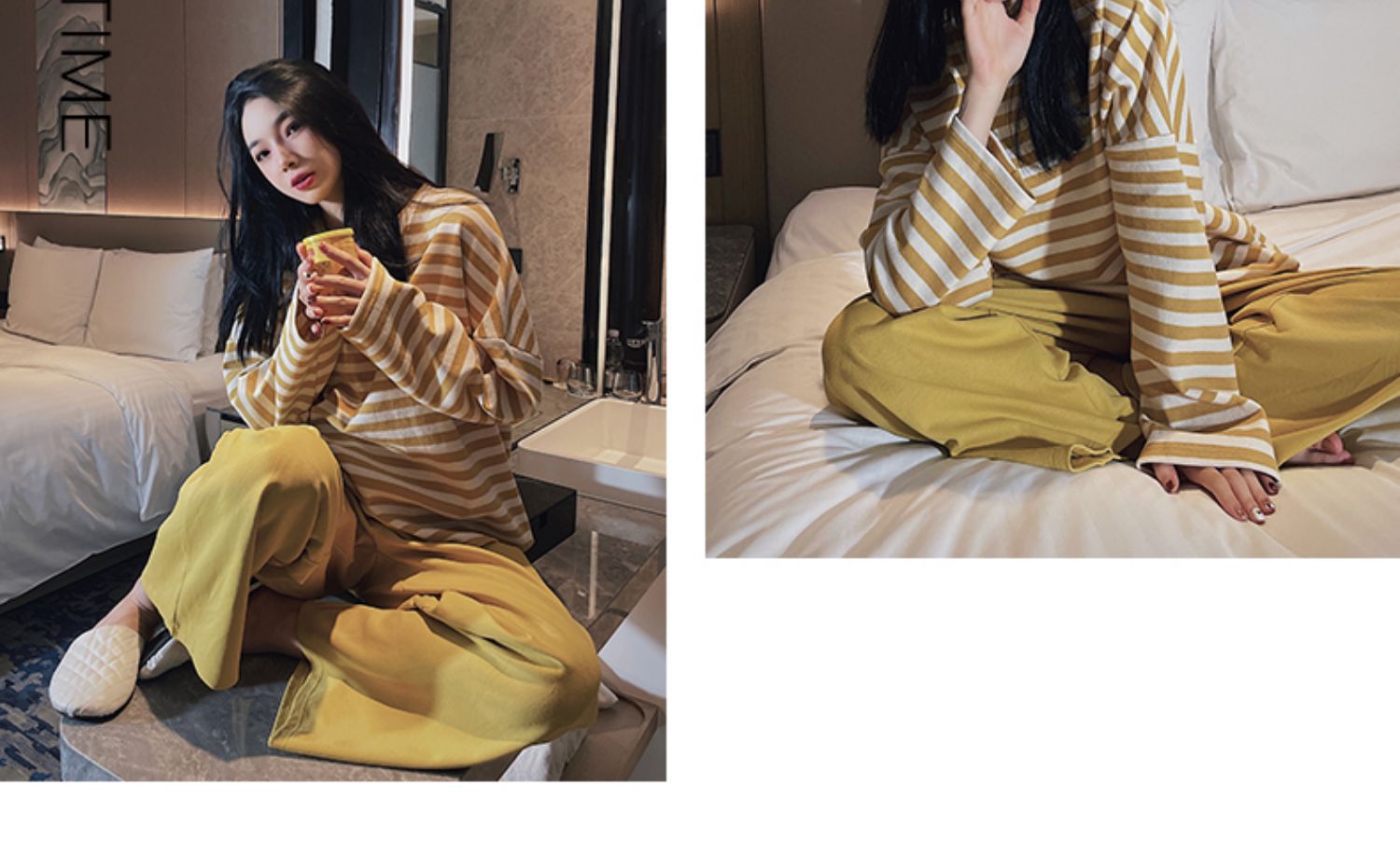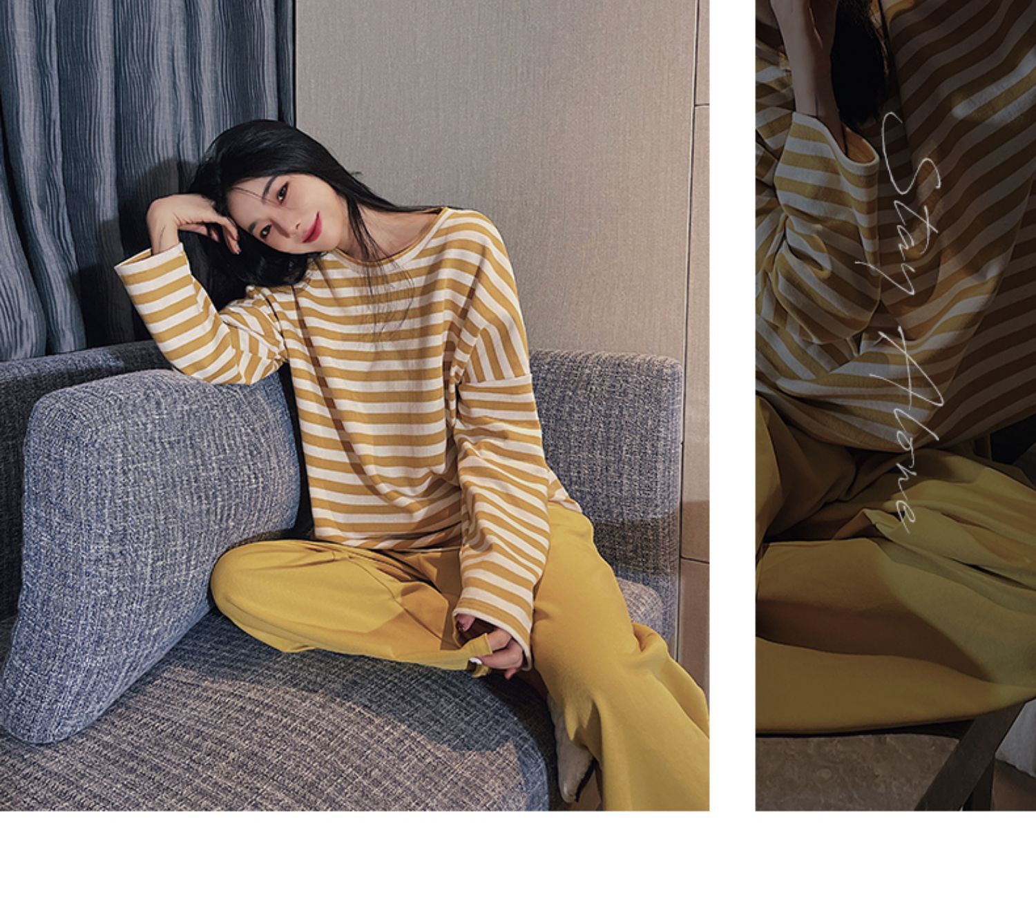 20TYPE ストライプシャツパジャマ女春秋長袖かわいい甘い学生薄手スーツネット人気爆発冬部屋着外着 パジャマ