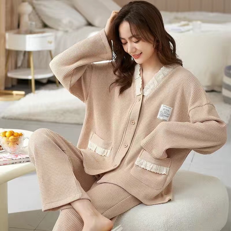 パジャマ レディース 綿 春 夏 肌触り ルームウエア 部屋着 前開きパジャマ 前開き 長袖 秋冬 ナイトウエア Vネック コンフォート 肌触り 長袖パジャマ 入院