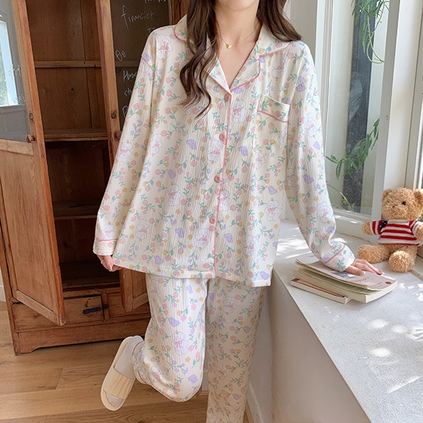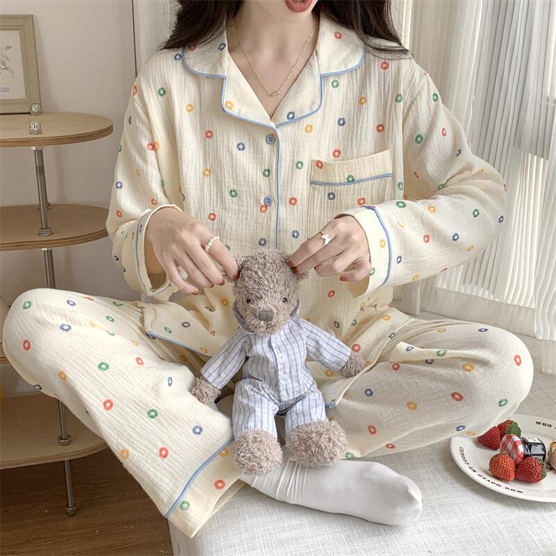 パジャマコレクション 長袖 パジャマ レディース 綿 かわいい ルームウェア 肌に優しい 上下セット ロングパンツ 防寒 柔らかい肌触り 韓国 セットアップ 吸汗通気 部屋着 寝間着 女の子 秋冬春