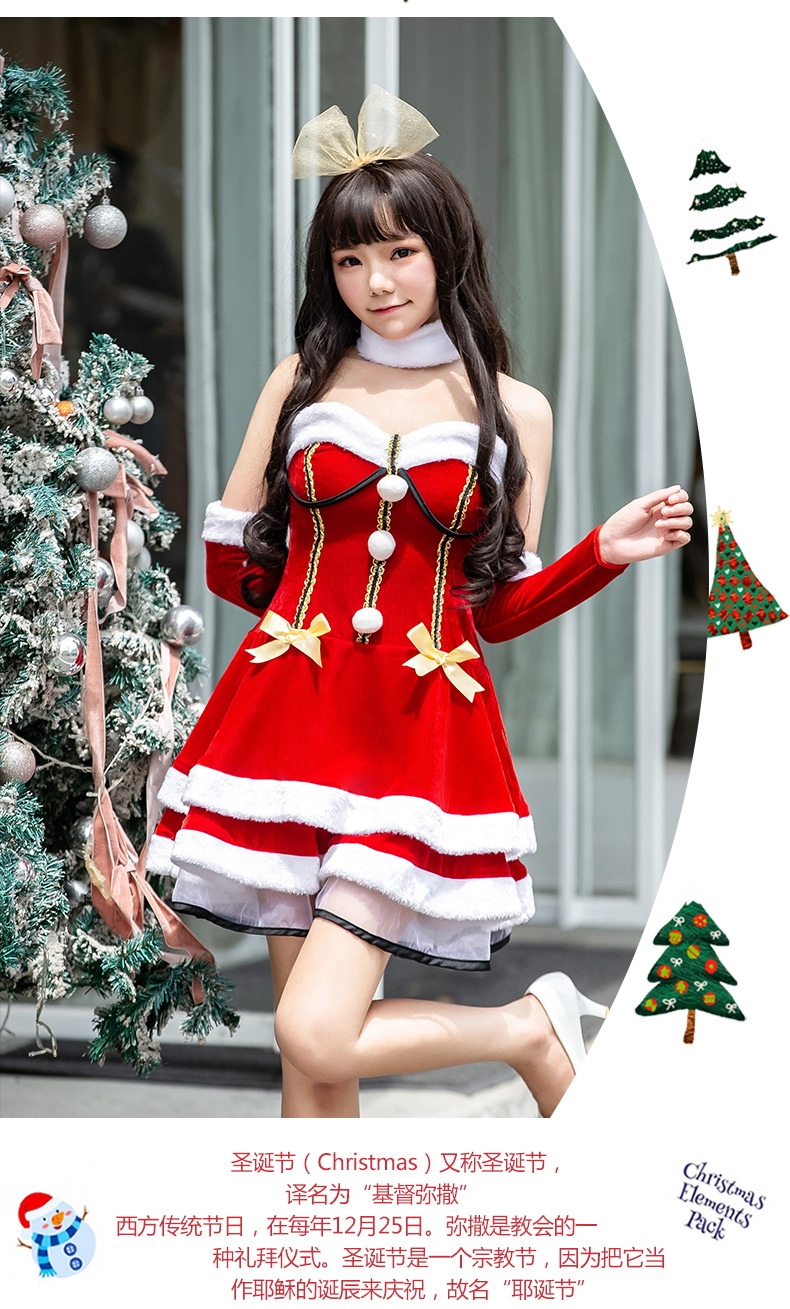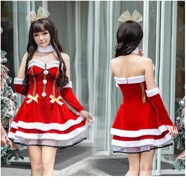 ハロウィンクリスマスパーティー映画テレビ気質女性レッドサンタクロースコスプレショー服ファッションファスナー個性かわいい仮装舞踏会お衣装を演じるワンピース3点セット 涼しく楽ちんセットアップ