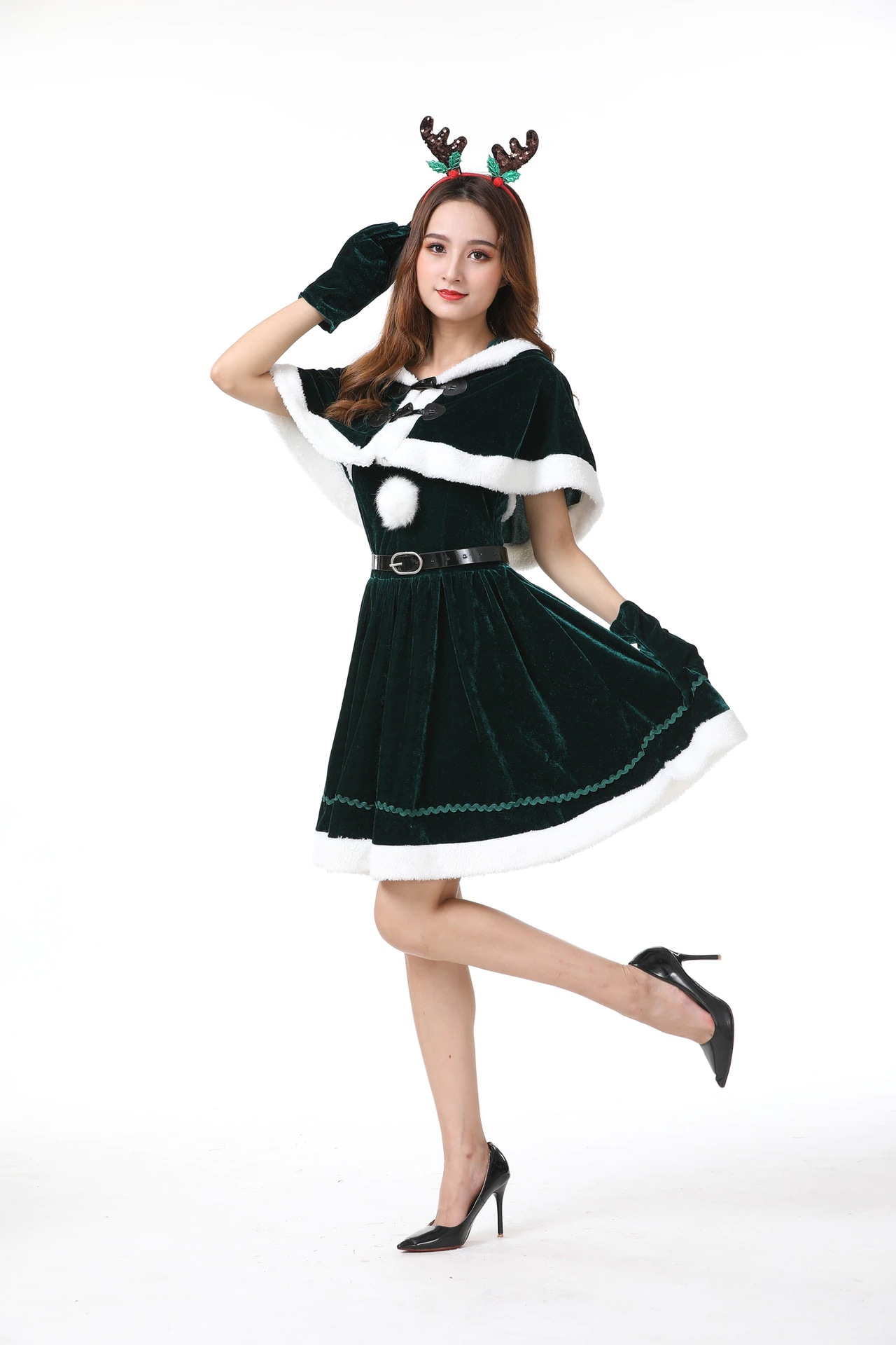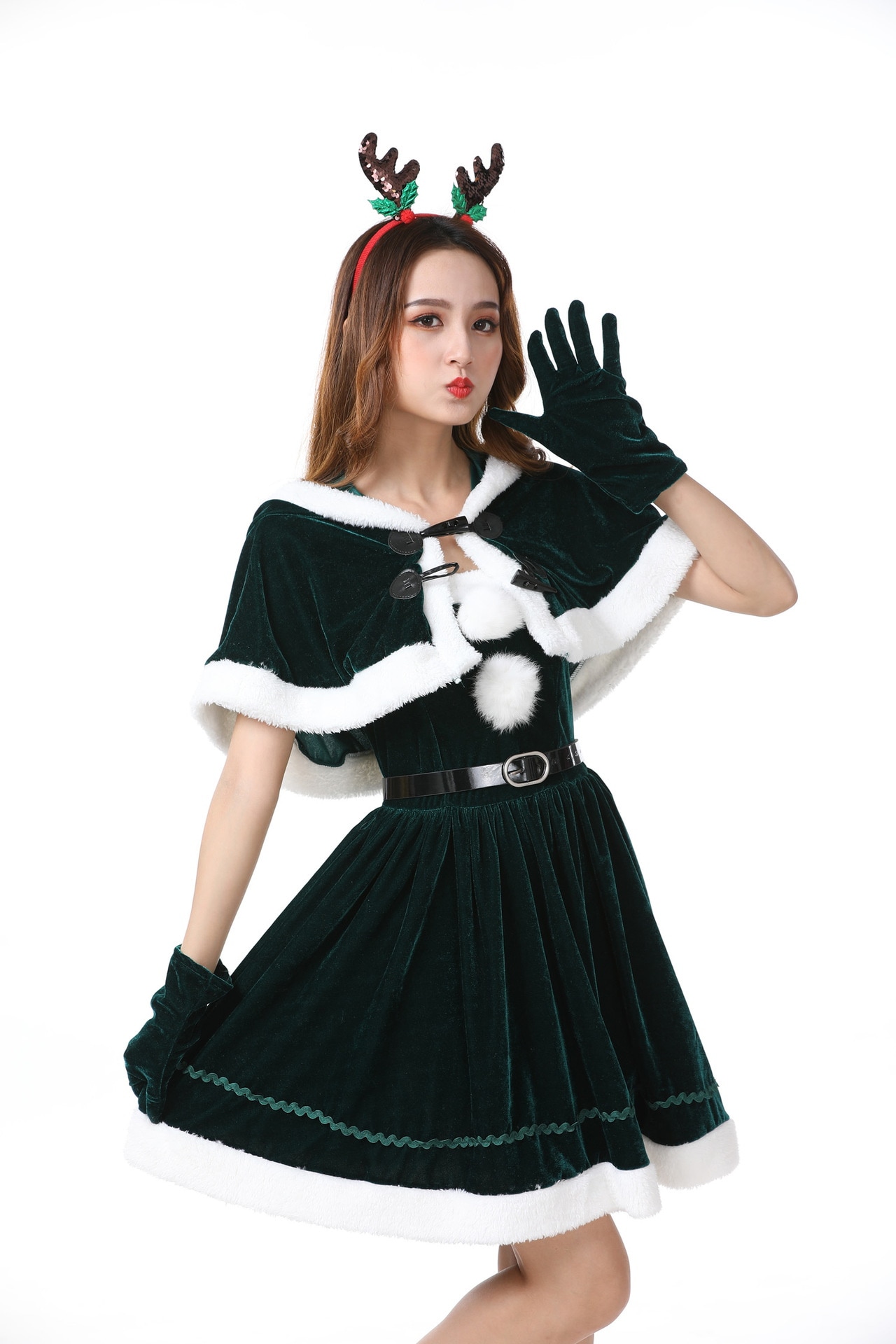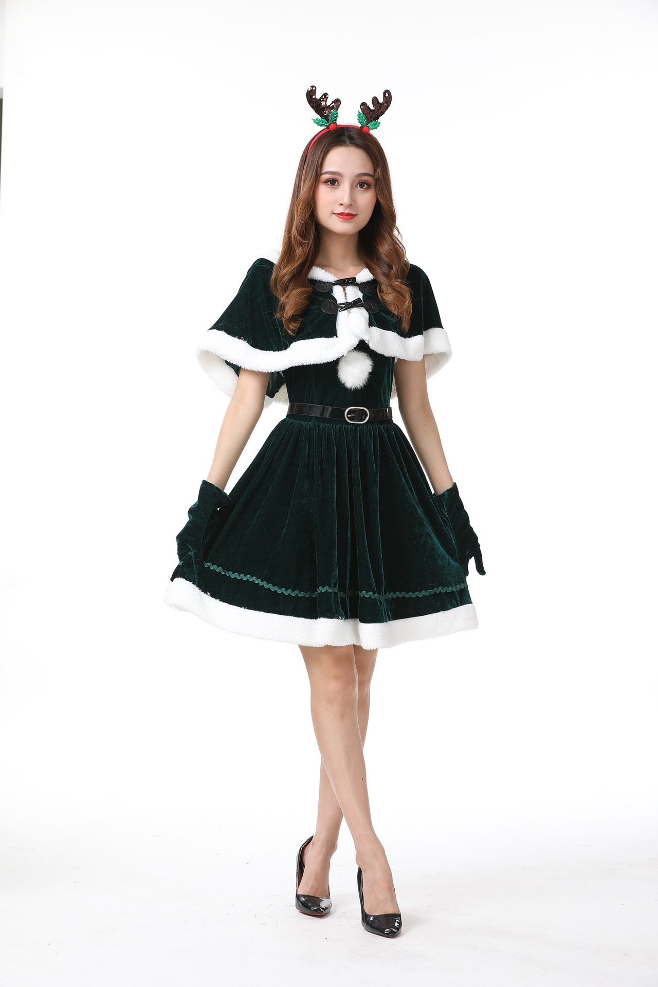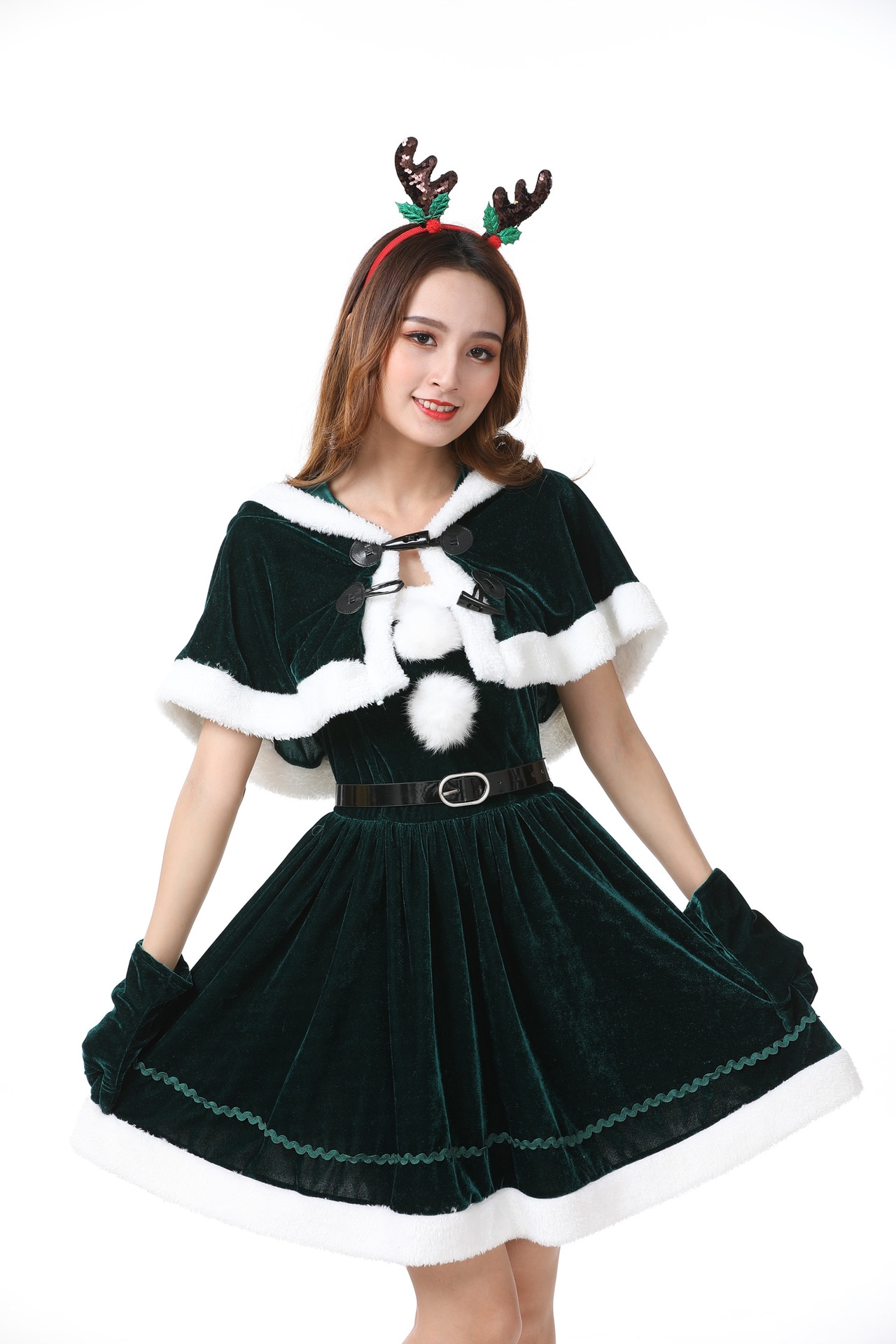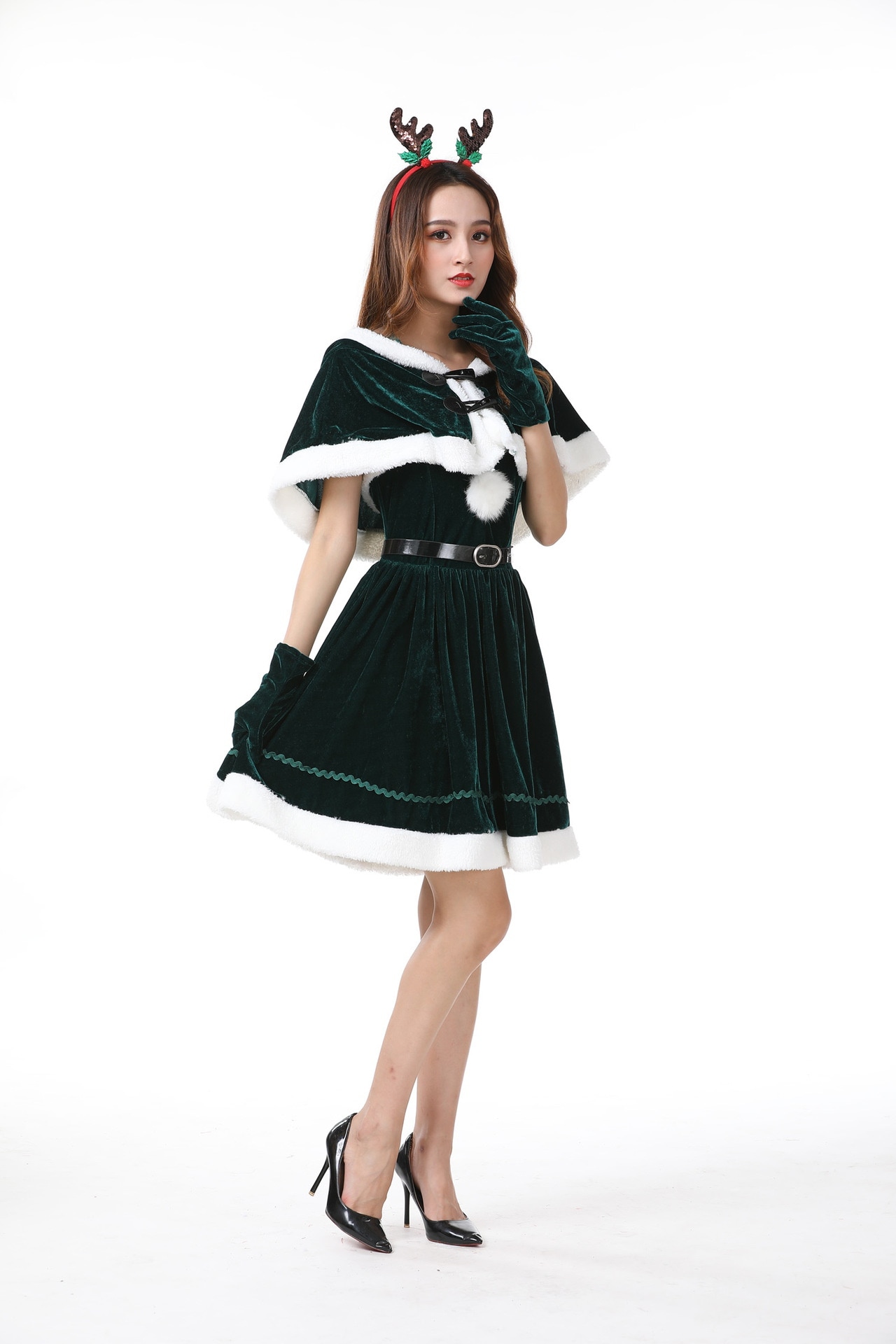 ハロウィンクリスマスパーティー映画テレビセクシー気質女性サンタクロースヘラジカ匹コスプレショー服ファッションファスナー個性かわいい仮装舞踏会お衣装を演じるワンピース5点セット 涼しく楽ちんセットアッ