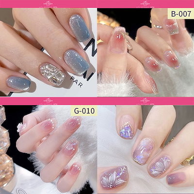 ネイルチップ 国内発送 グラデーション キャッツアイ フレンチネイル 24爪付け 1秒簡単貼れる 両面テープ付き 繰り返す利用可能