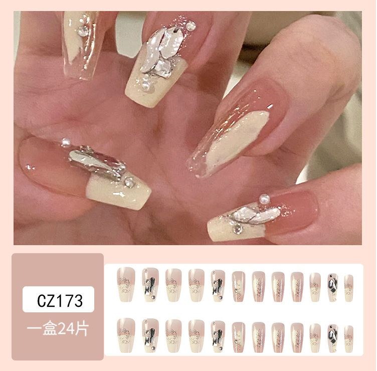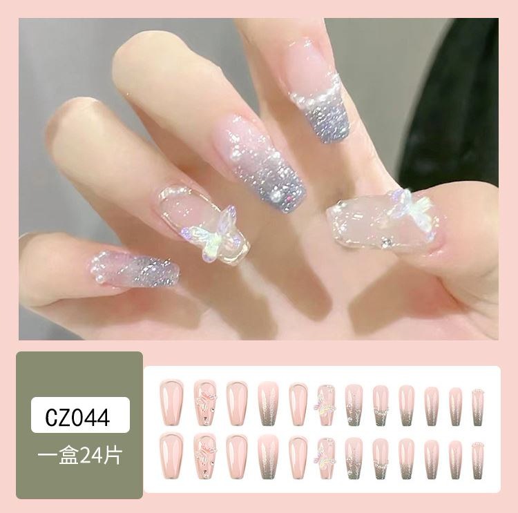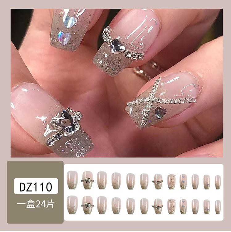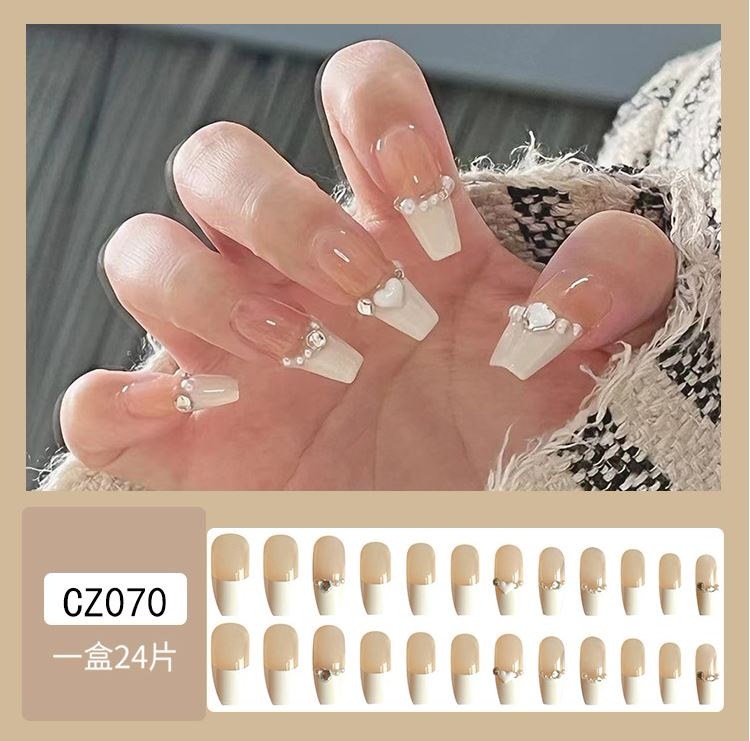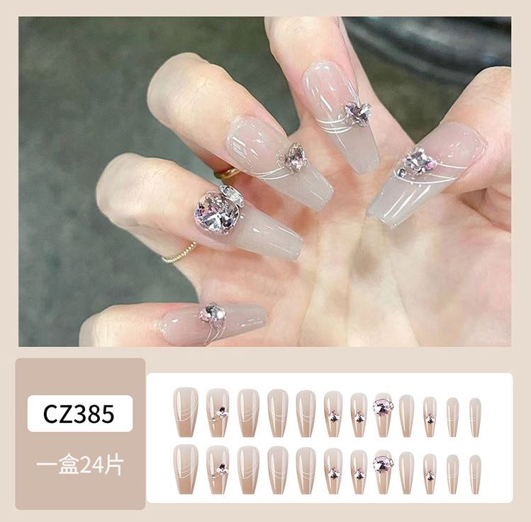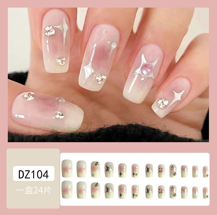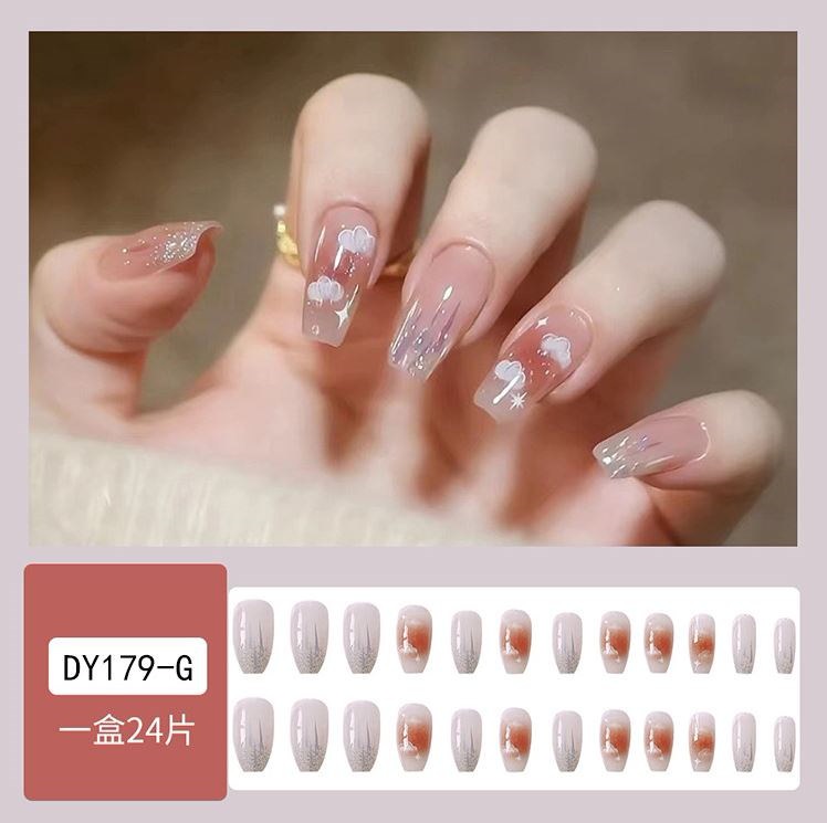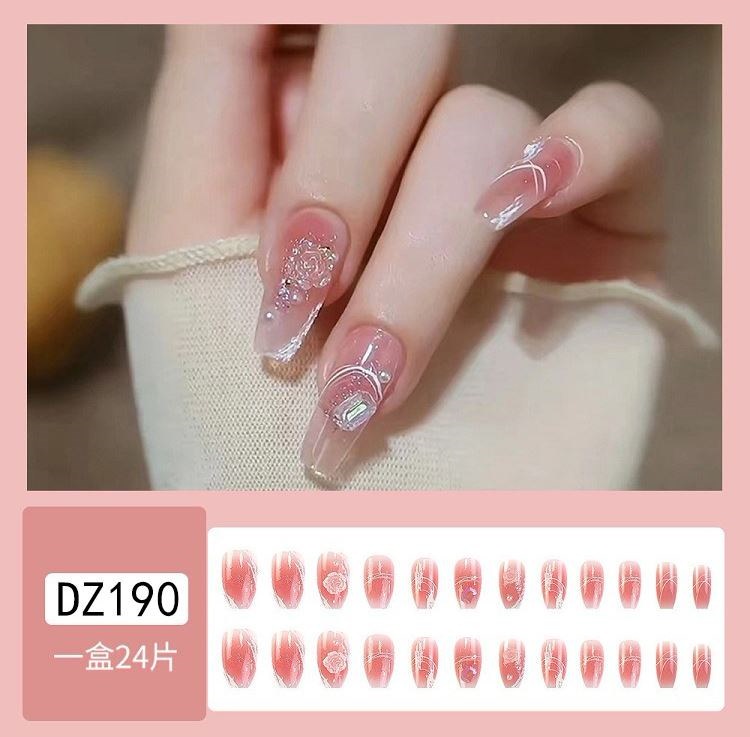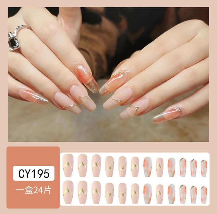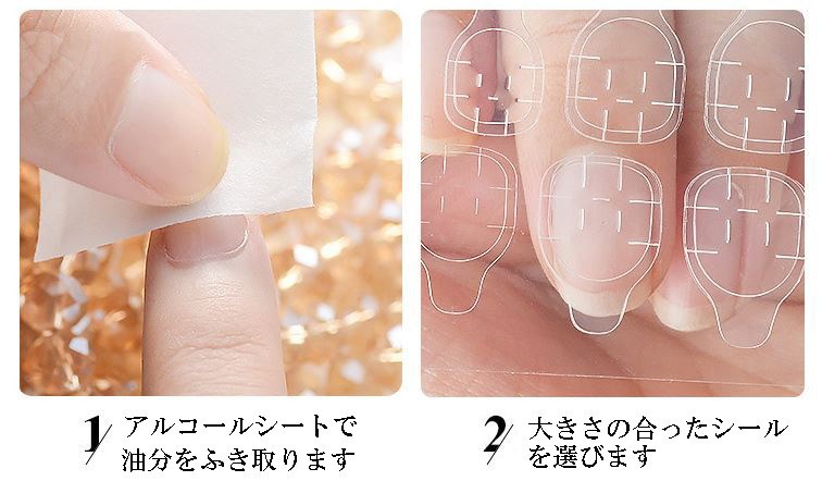 ネイルチップロング 24爪付け 簡単に貼れる チップ用のり付きネイルシール 韓国ファッション