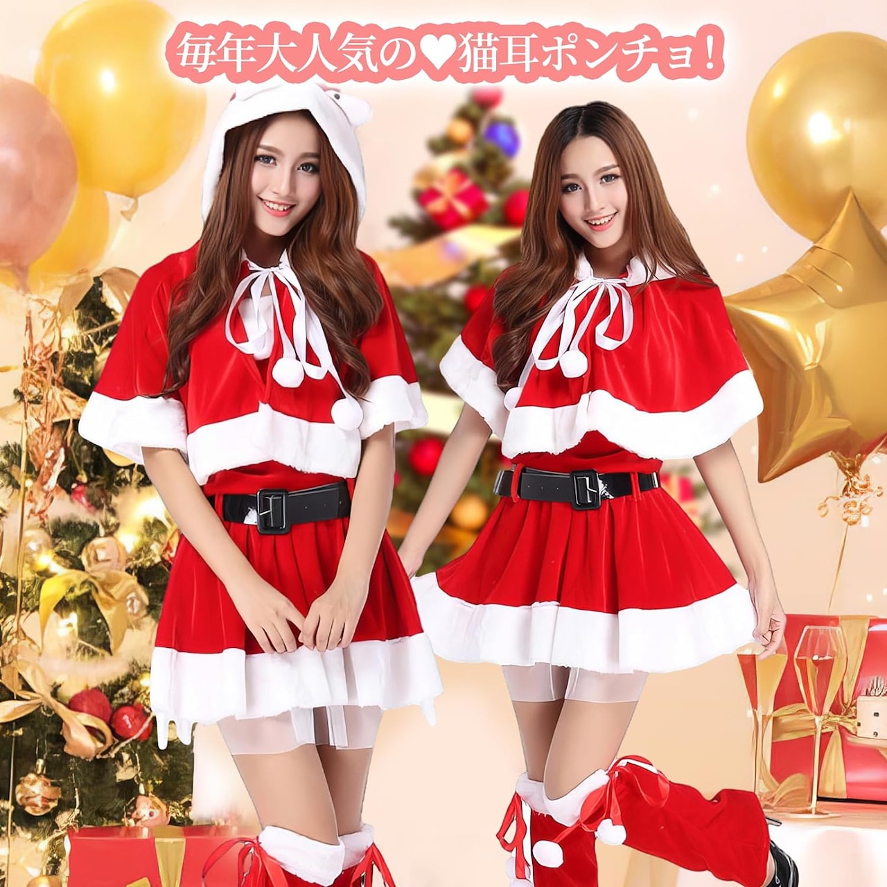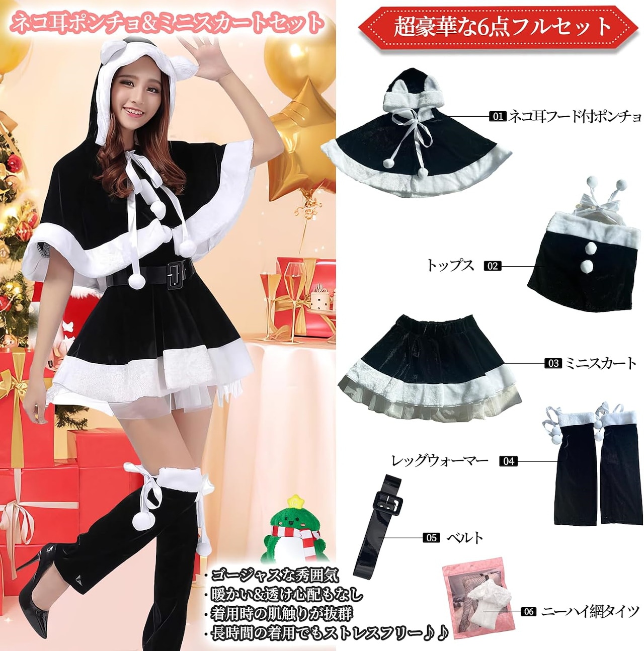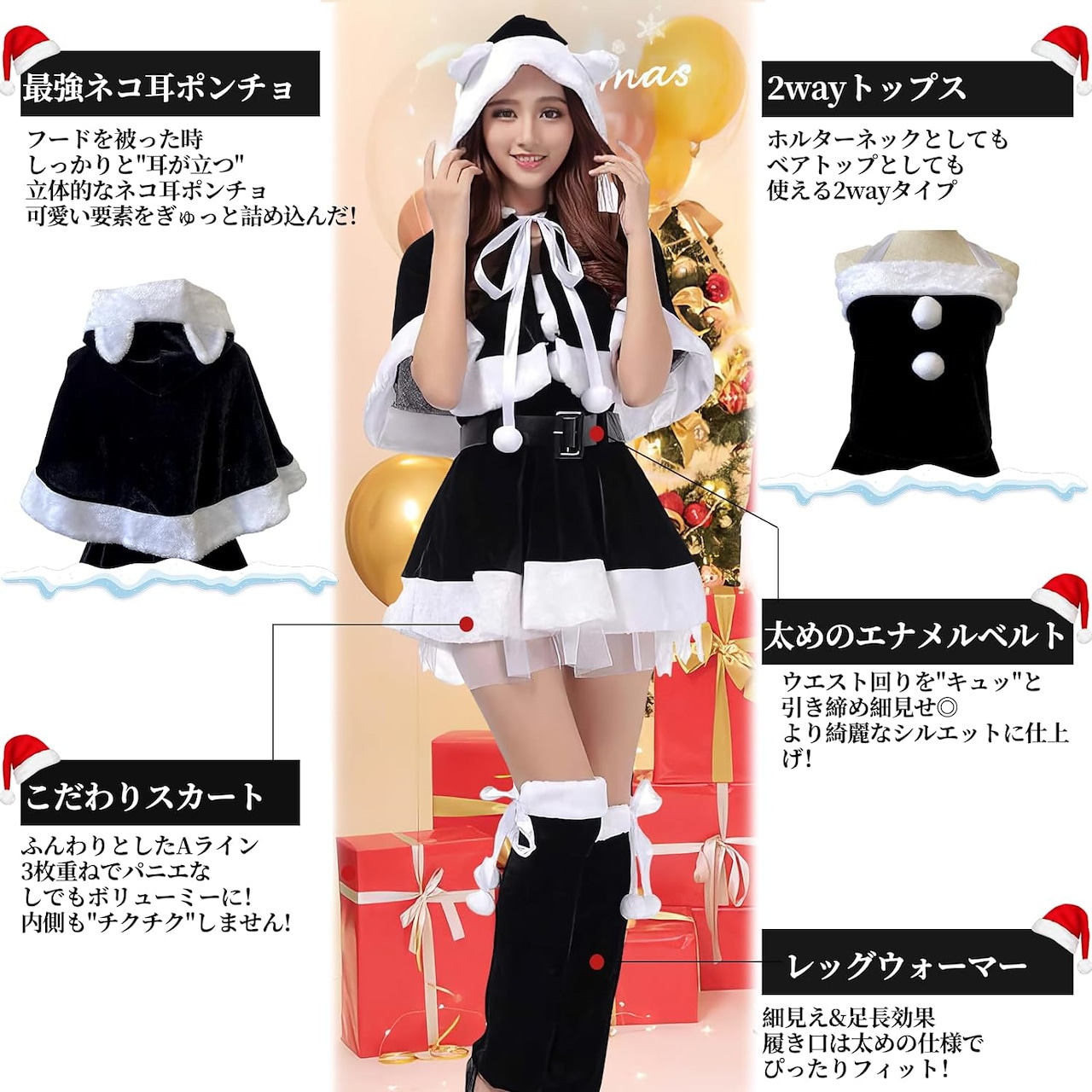 レディース 黒サンタ ネコ耳 ポンチョ クリスマス サンタ コスプレ 黒 セクシー ブラックサンタ クリスマスコスプレ サンタコス サンタ衣装