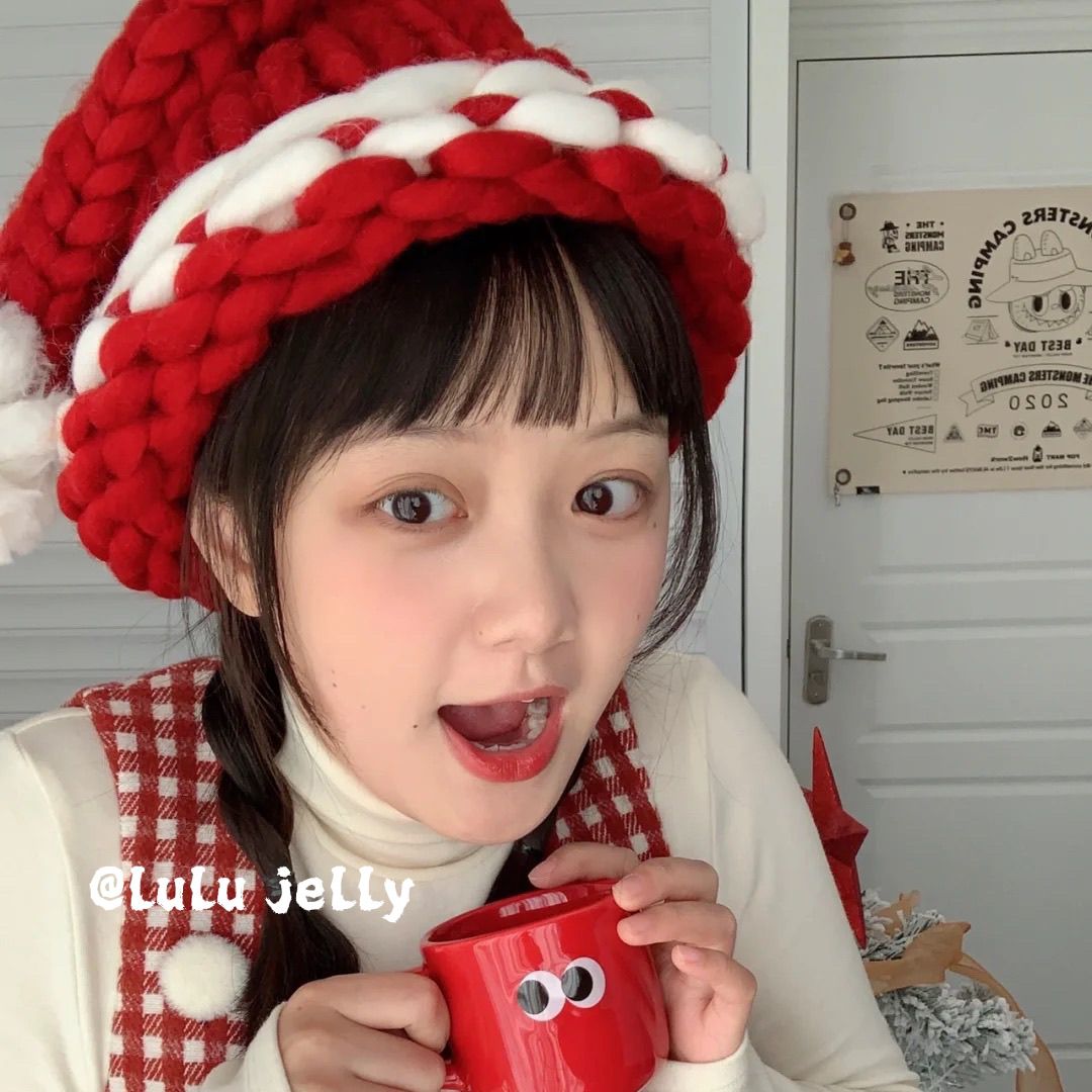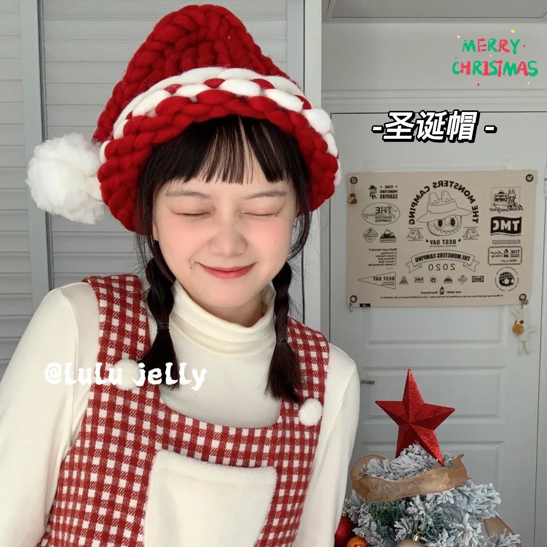 Qoo10限定 クリスマス飾り サンタ帽 ins 太い毛糸 写真を撮る道具 かわいい 大人のサンタクロース クリスマス