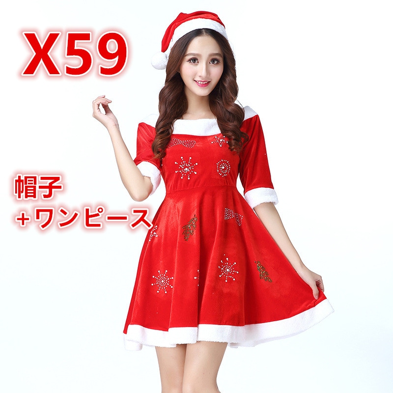 ハロウィンクリスマスパーティー映画テレビ気質女性レッドサンタクロースコスプレショー服ファッションファスナー個性かわいい仮装舞踏会お衣装を演じるワンピース2点セット制服の誘惑 涼しく楽ちんセットアップ