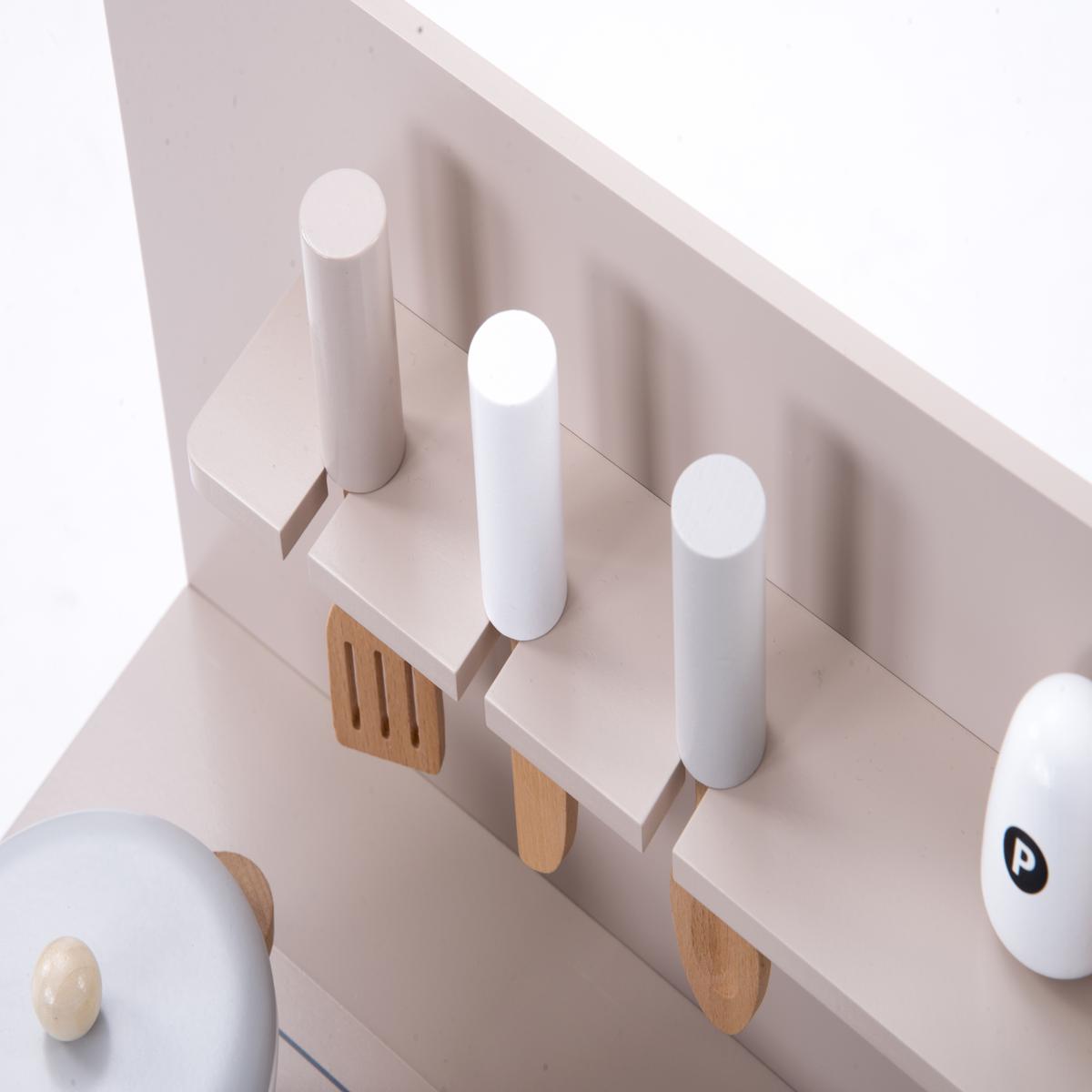 くるくる回して遊べる蛇口とぴったりサイズのシンクがセットになります。食材を洗って、遊びの中からきれいにする意識を生みます。