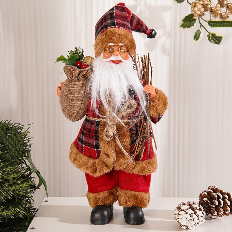 新作クリスマス オーナメント 12インチ 立ち姿 サンタクロース ぬいぐるみ サンタリュッククロース 人形置物 立っている人形 クリスマスプレゼント 装飾品が飾られている