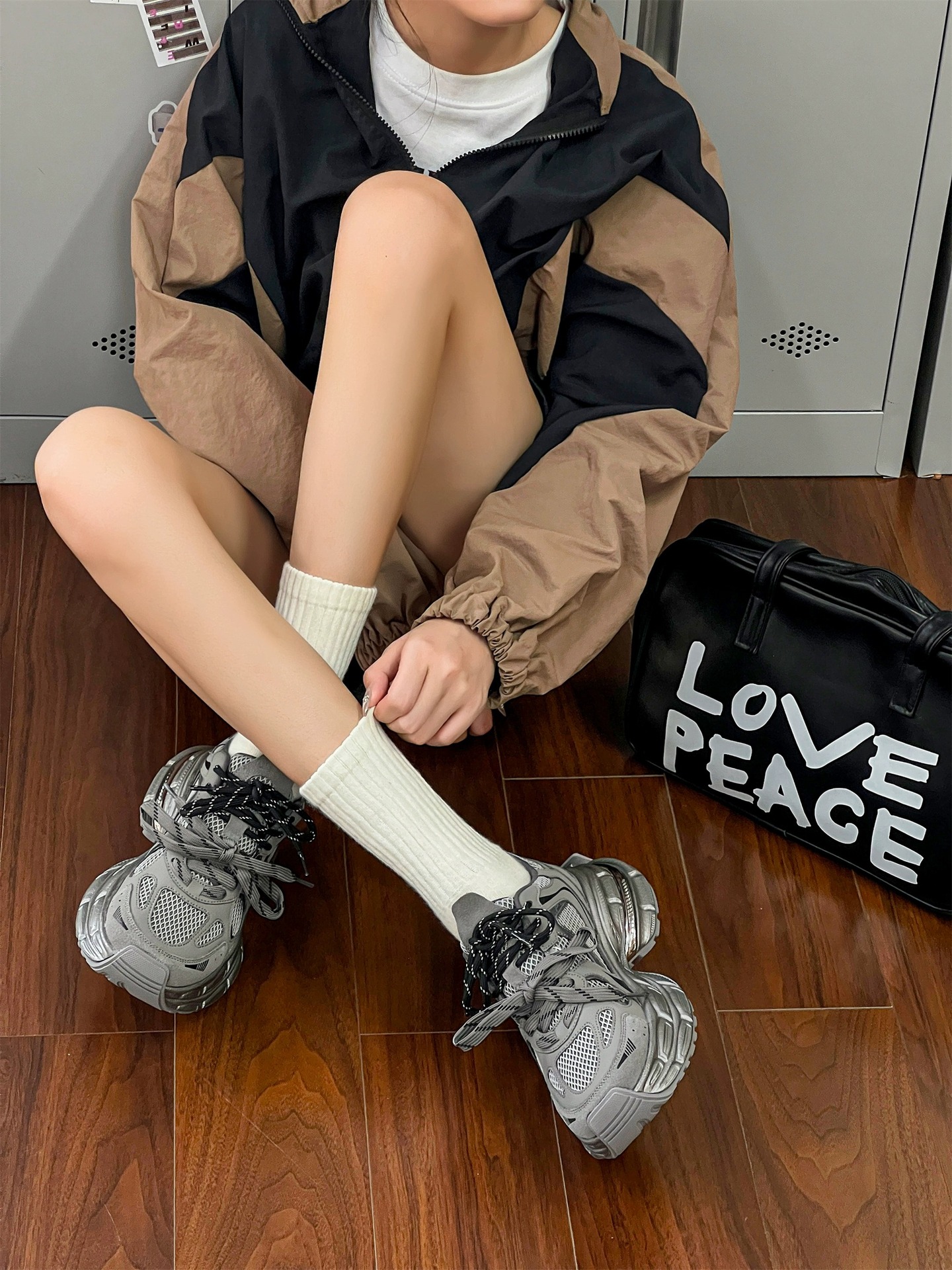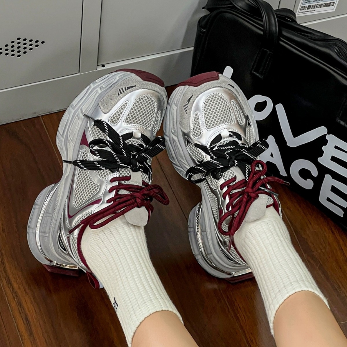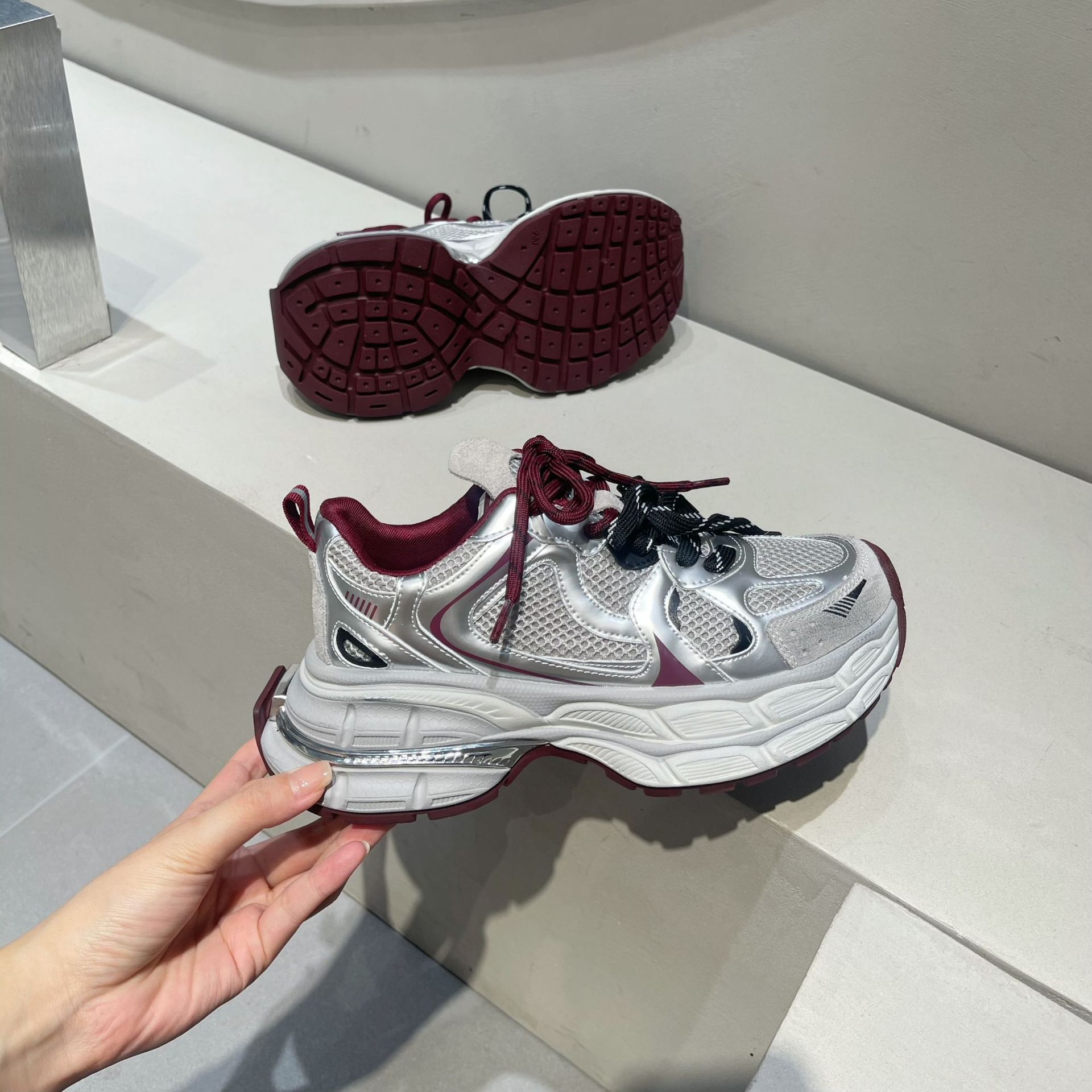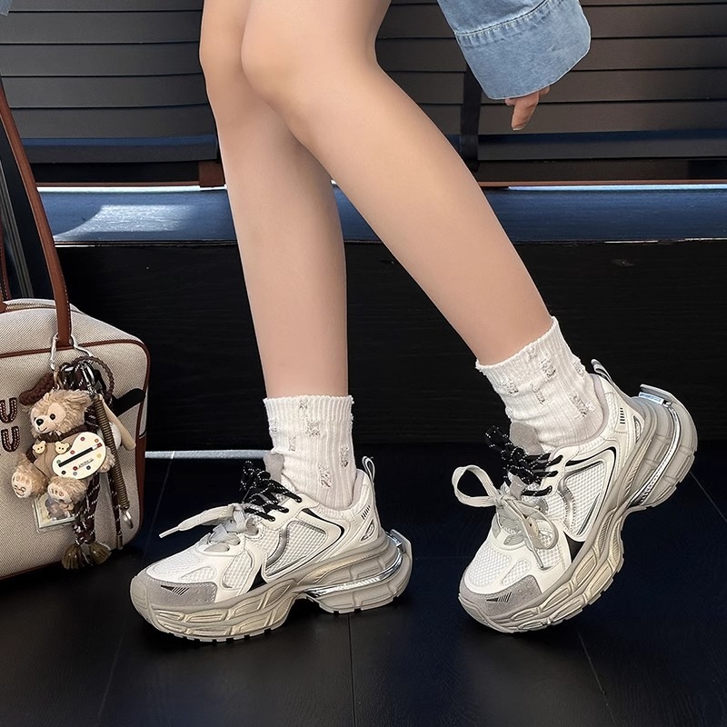 本革厚底のオヤジ靴女性2024秋の新韓版通気性百合発足小余暇レトロスニーカー 厚底スニーカー