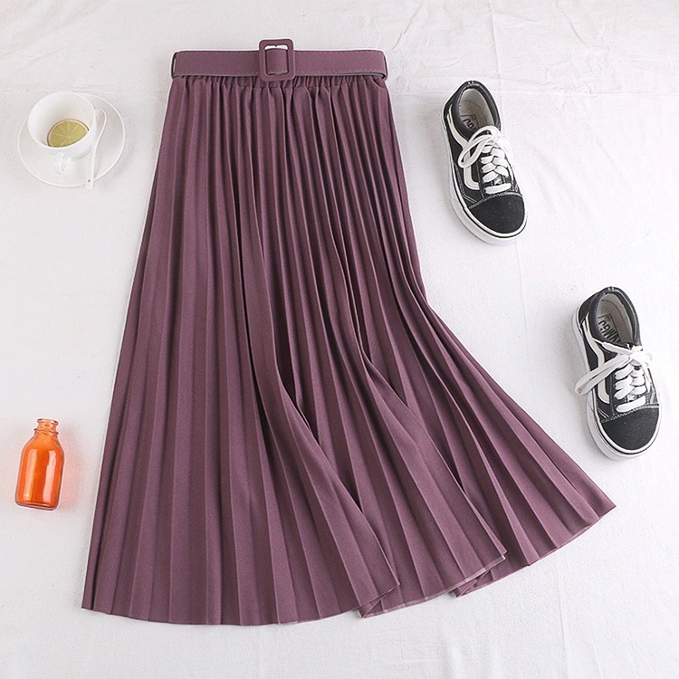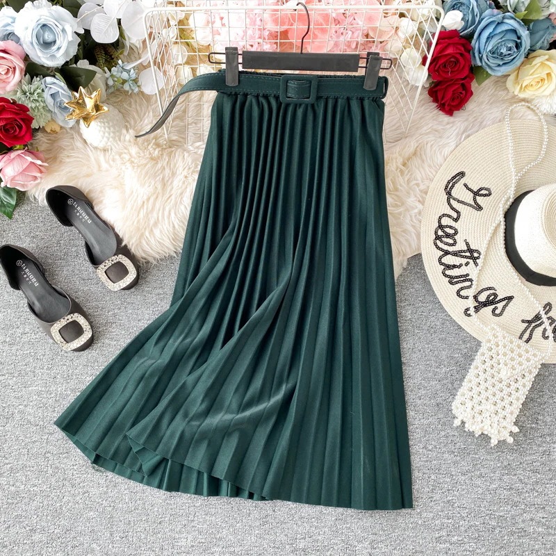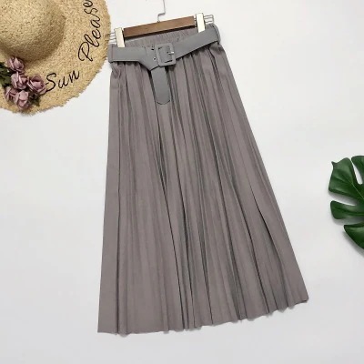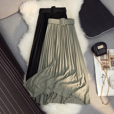 新色追加 ベルトを贈る 新作生地ドレープ風プリーツスカートハイウエストラージスカートスカートマルチカラーミドル丈コミューター