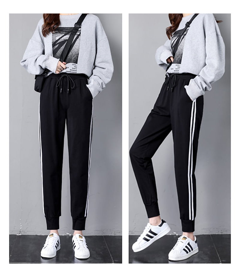 美脚ジョガーパンツ スポーツ ジャージ 通気 吸汗速乾 部屋着 ヨガ 二本ライン カジュアルパンツ レーディ 3枚を購入すると特典付き