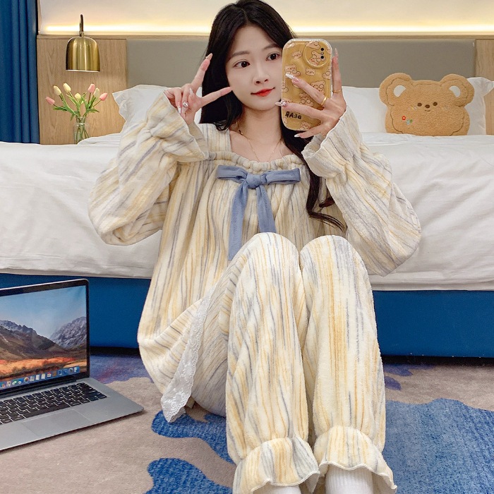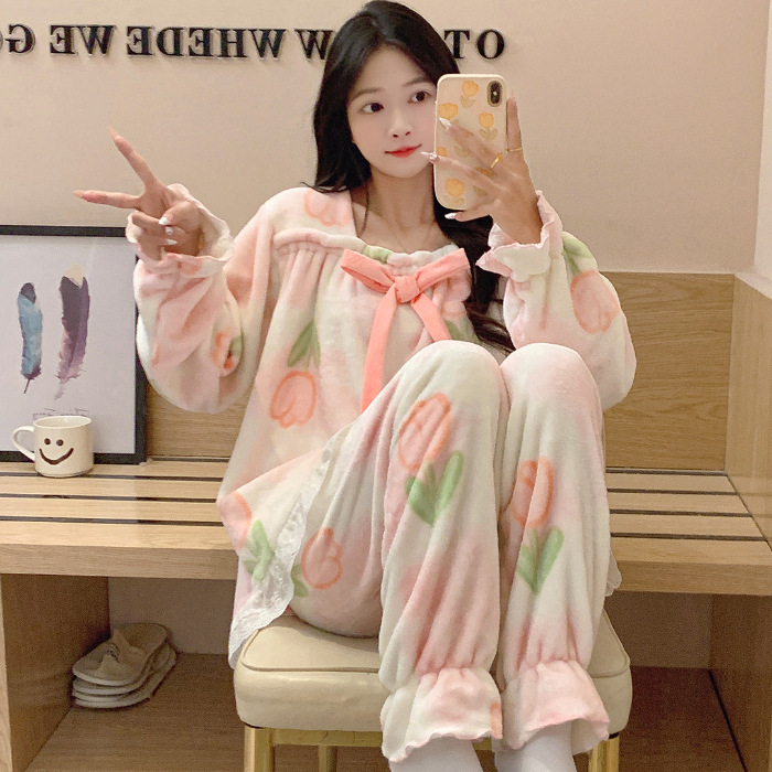 二点セット パジャマ コーラルフリース 厚手 保温 可愛い セットレディース ナイトウェア 秋冬 コーラルフリース 上下セット パジャマ クリスマスプレゼント