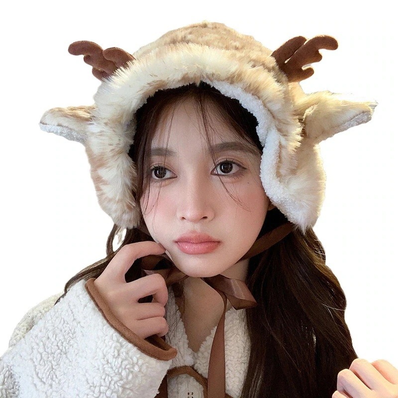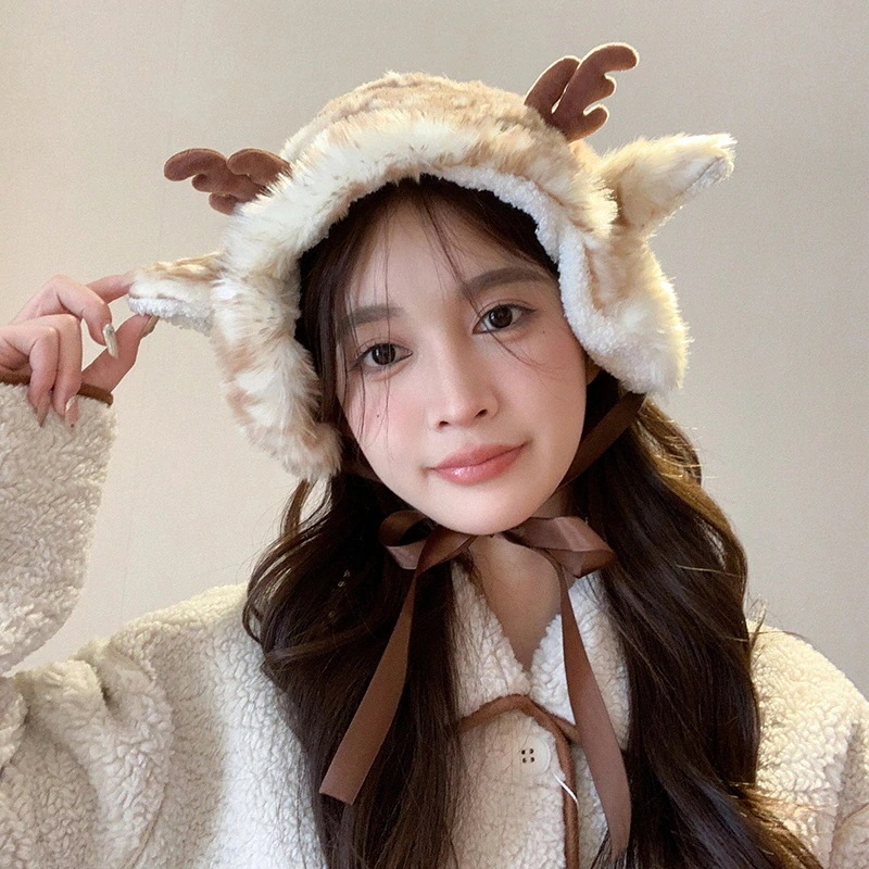 甘美耳カバー女性ヘラジカ耳保護帽保温毛鹿角耳バッグ加絨毛耳カバー 冬用品