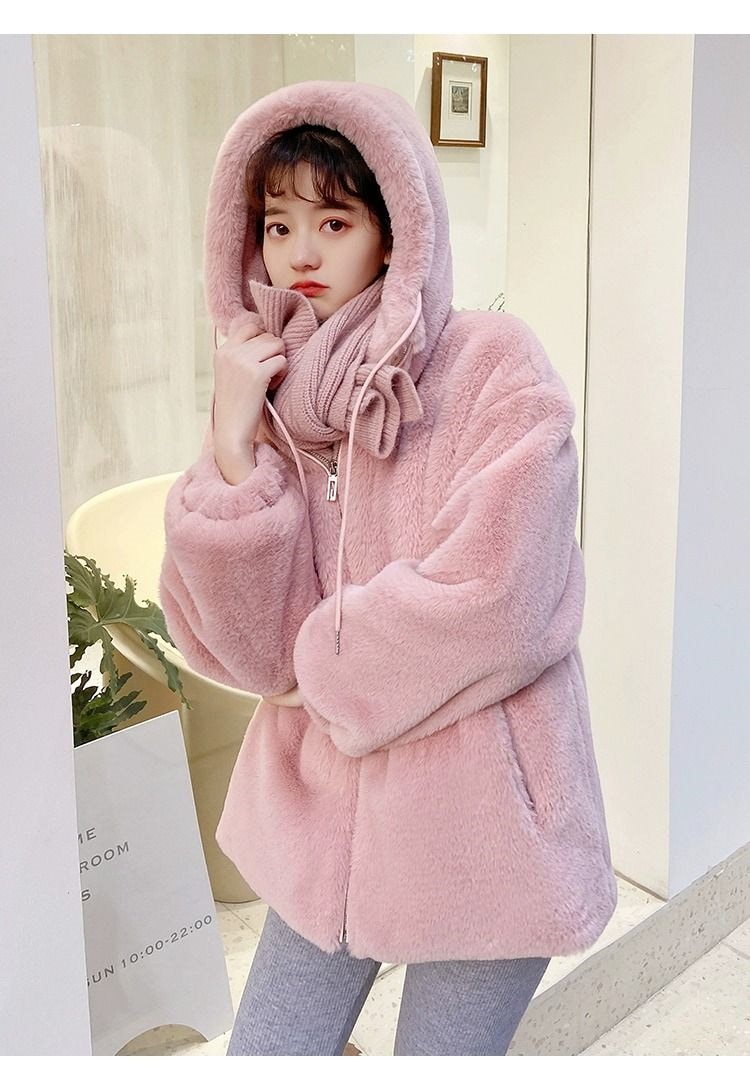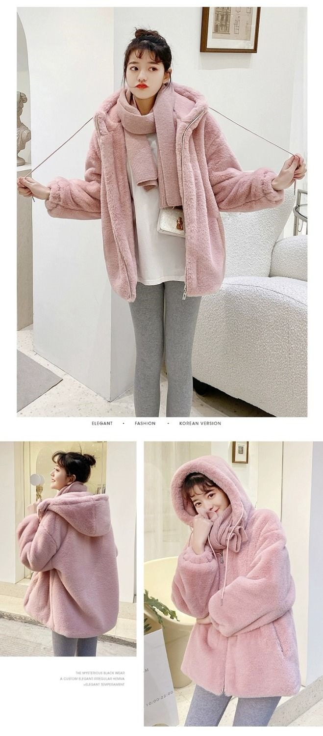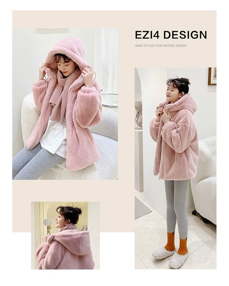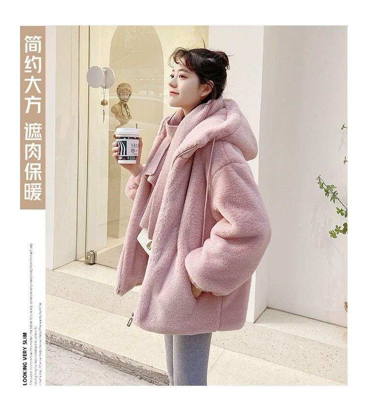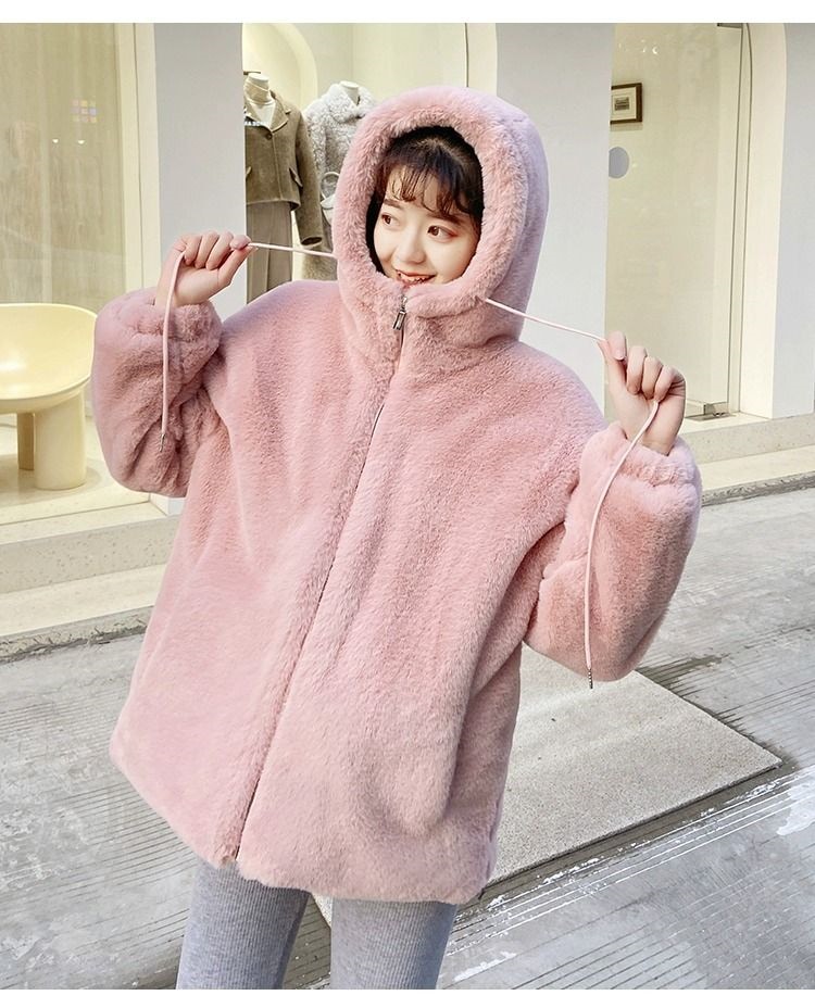 2024冬の新しい模造ウサギの毛皮のビロードの毛皮の短い若い方法厚くされたラムのウールのコートの女性の毛皮のコート トレンチコート
