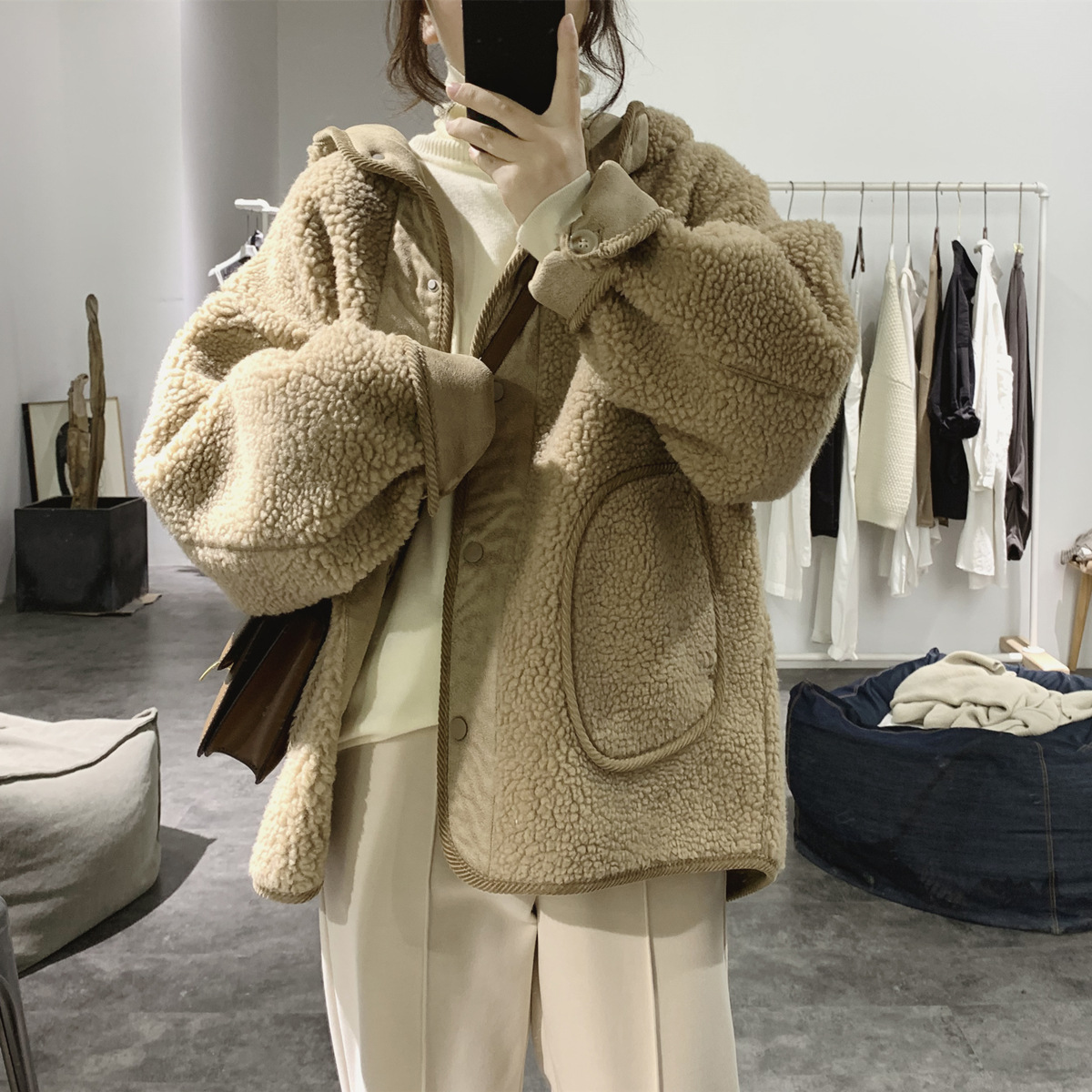 羊の毛のコートを両面に着た女春秋2024年新型韓国版ゆったり毛皮一体にスエードの厚手の上着 トレンチコート