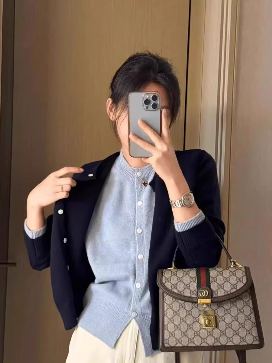 フェイク2枚のニットカーディガン女性2024早秋の新作韓国系着重ね着セーターのけだるい風トップスコート ニット