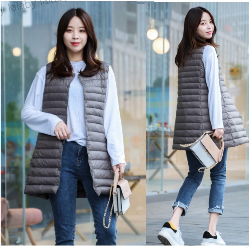秋新作 ダウンロングベスト インナーダウンベスト 品質90%ダウン ウルトラライトダウン ダウンジャケット 体型カバー レディース 暖かい 防寒 軽量 収納袋付 5color