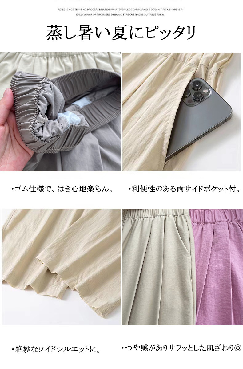 2024改良型 ワイドパンツ レディース 冷感 ロングパンツ 肌触り 速乾 オーバーサイズ 体型カバー 薄手 UVカット ガウチョパンツ パンツ 着痩せ 低身長 高身長