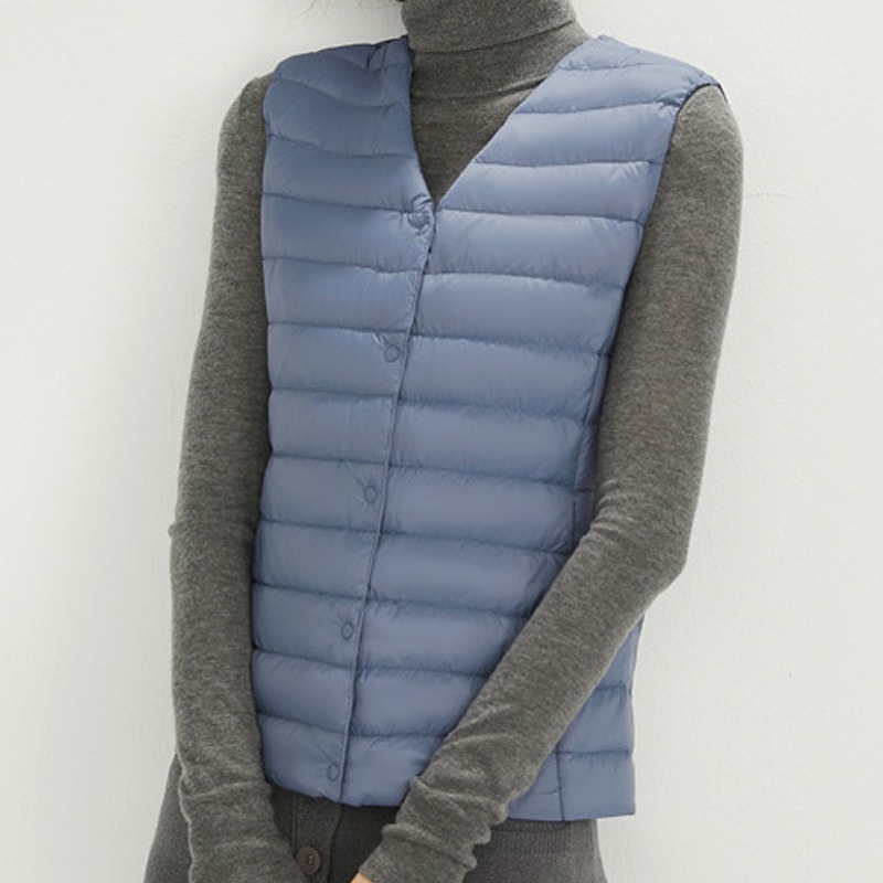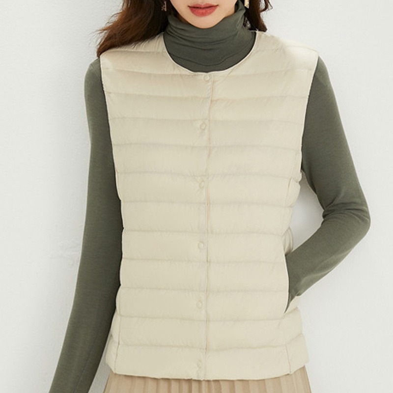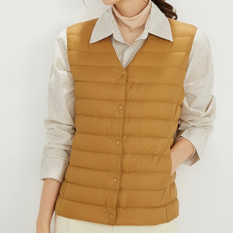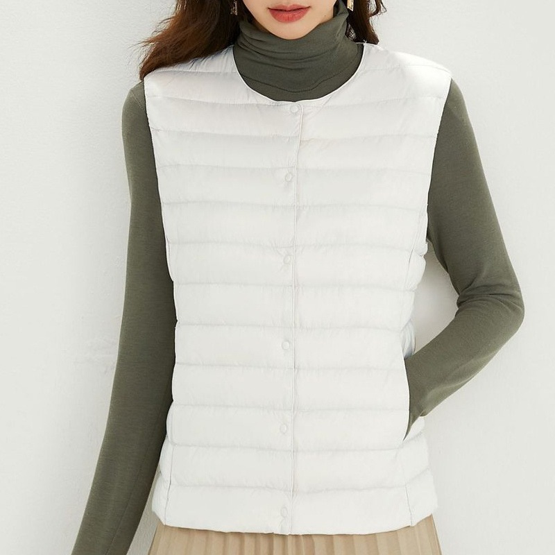 ダウンベスト ロング レディース ゴルフ コンパクト 前ボタンタイプ ダウン80% フェザー20% 軽量 ライトダウン 秋冬 薄手 ポケッタブル インナーダウン 登山 山登り
