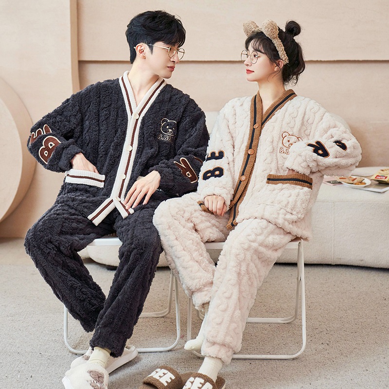 パジャマ カップルペアルック ルームウェア フランネル 冬 ペアパジャマ長袖パジャマペアルックお揃いレディースメンズ ネグリジェ レディース 単品売り