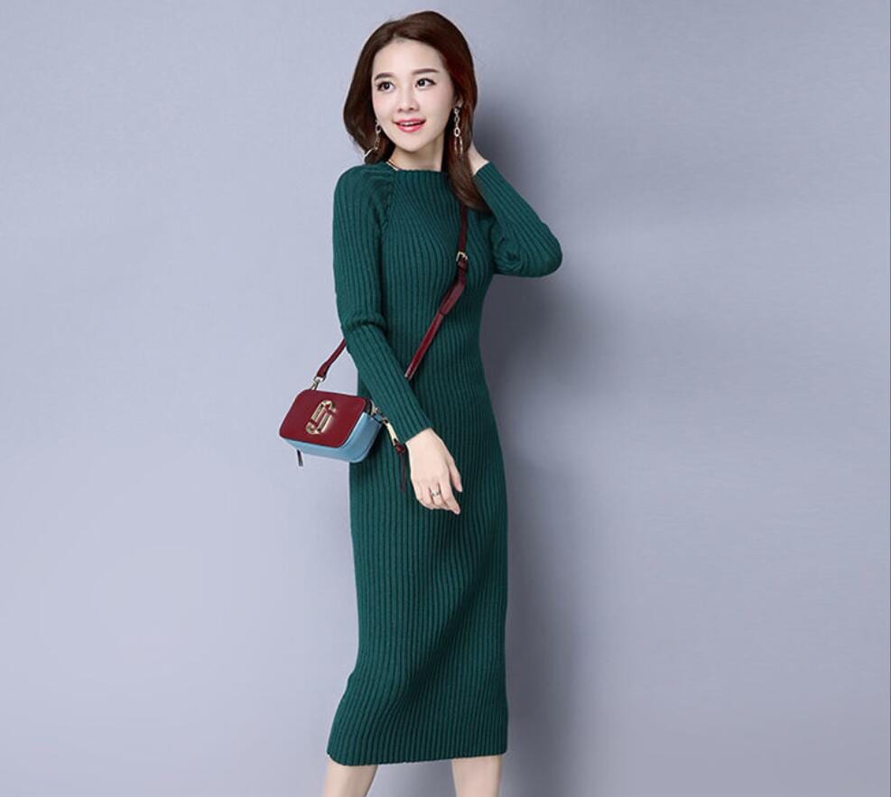 5000件以上販売SALE 品貭保証 春 ロングワンピース 気質 着やせ ニットワンピース 綺麗 ニットワンピ