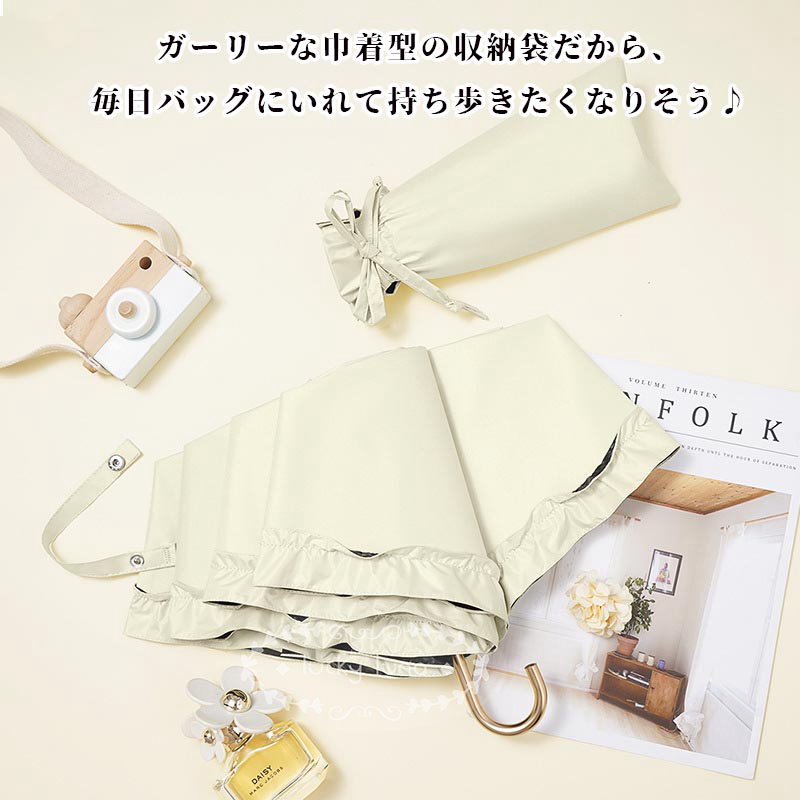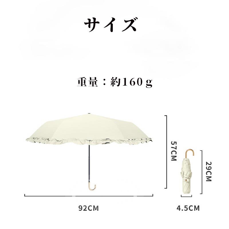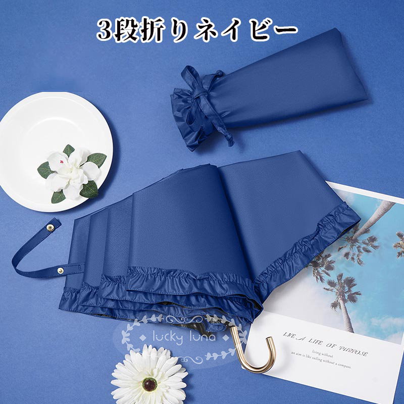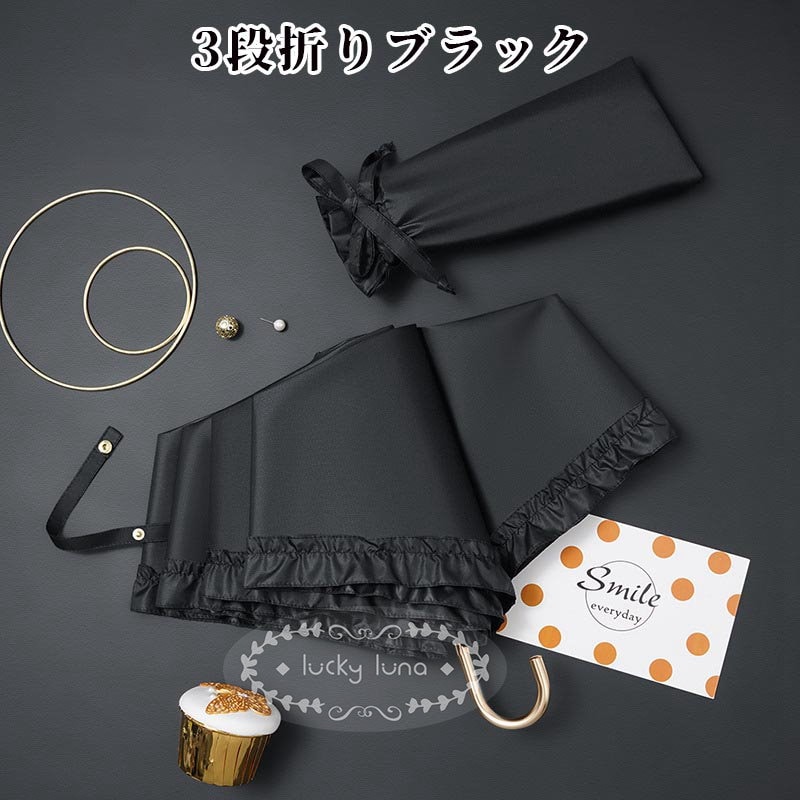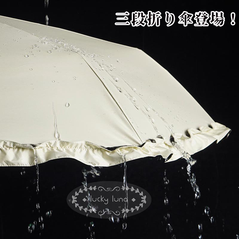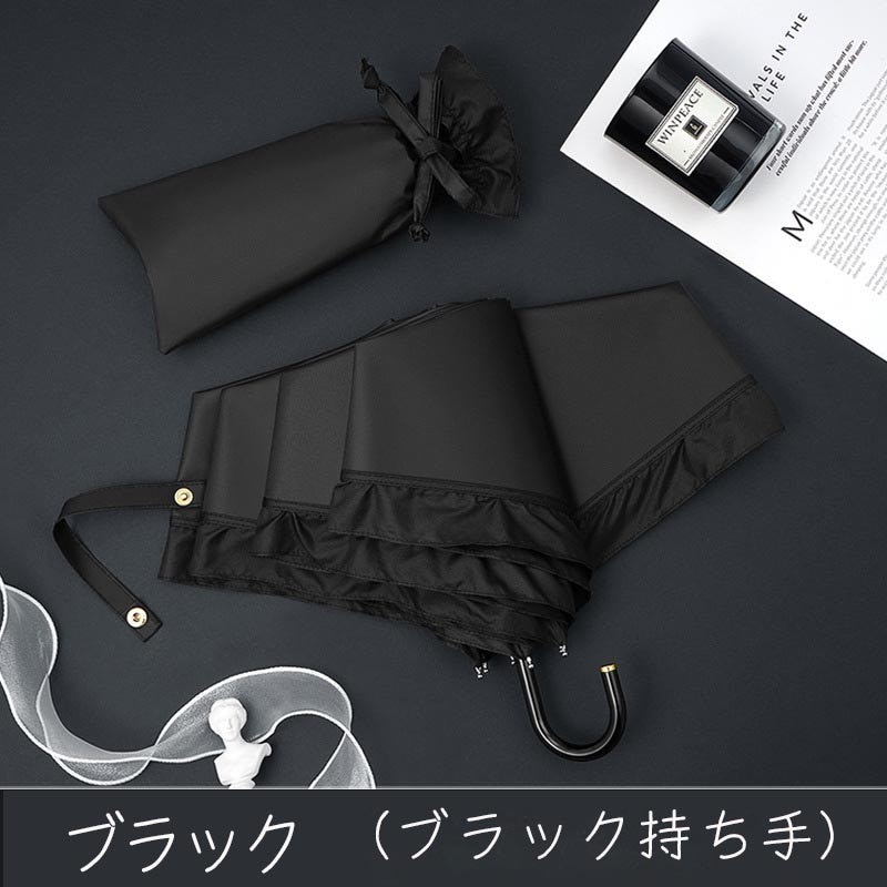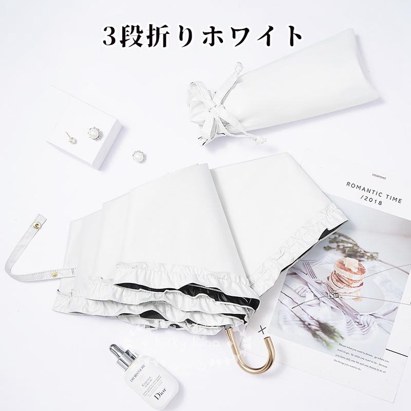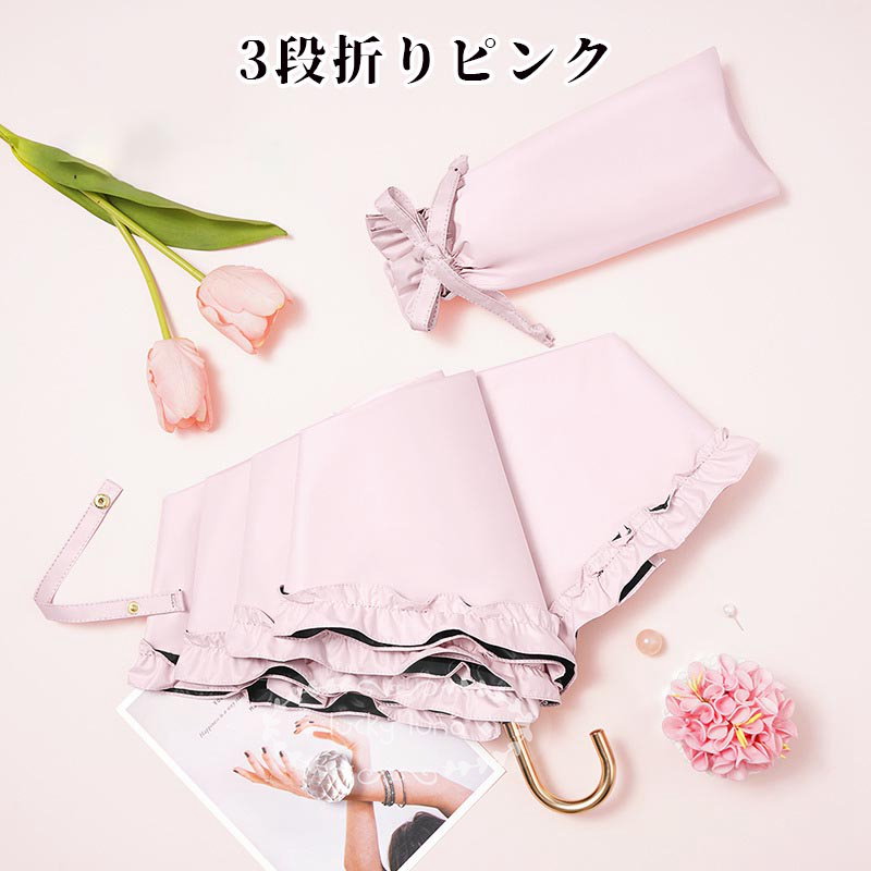 新品登場 日傘 完全遮光 フリル 長傘 3段折り 晴雨兼用 折りたたみ傘 軽量 撥水 バンブー 遮光率100% 遮熱 おしゃれ 傘 雨傘 内側 黒 UVカット 高級感 レディース 梅雨対策