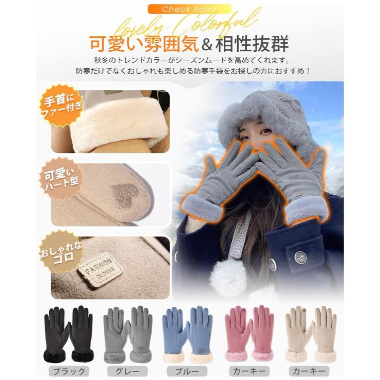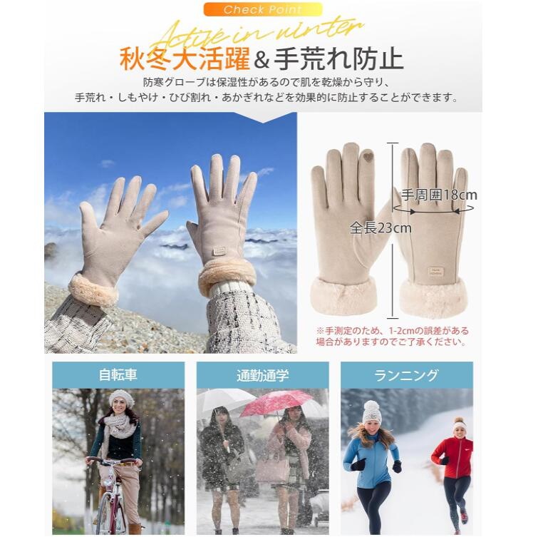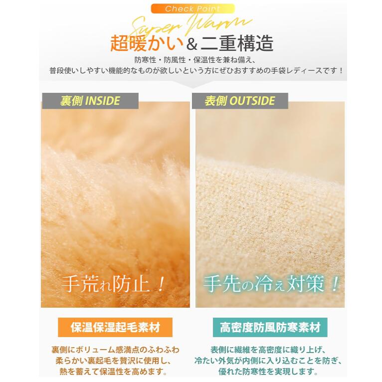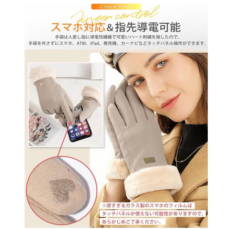 手袋 手ぶくろ グローブ スマホ手袋 レディース 韓国 冬 かわいい タッチパネル スマホ対応 モコモコ 防寒防風 撥水加工 裏起毛 裏フリース 厚手 保温 アウトドア スポーツ 快適操作