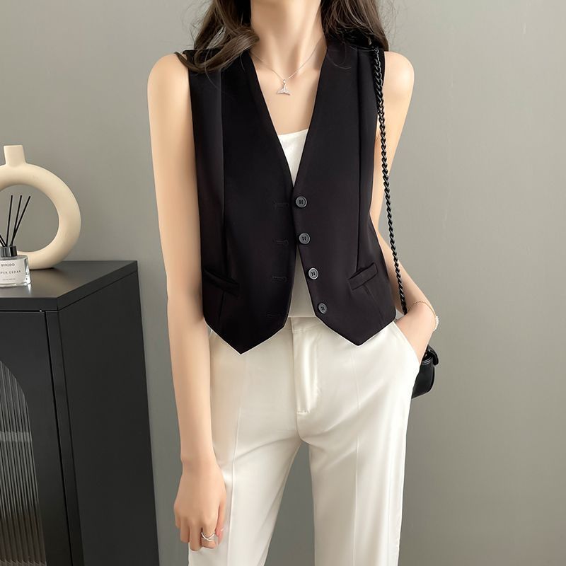 ベストコートカンバントップス新型スーツベスト女性ブラックショート丈ベスト ベスト