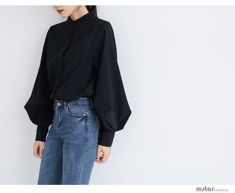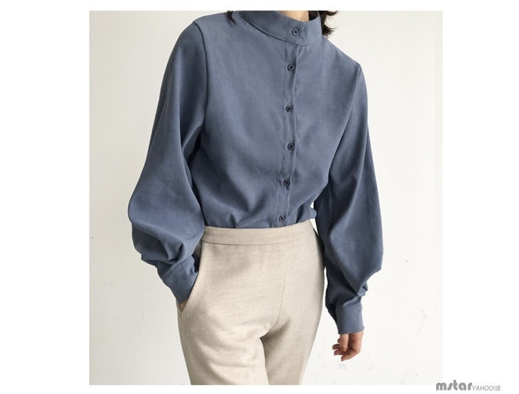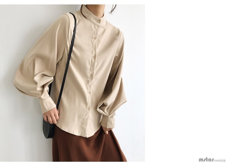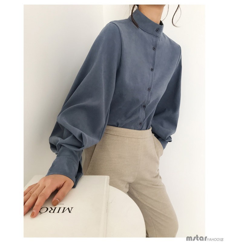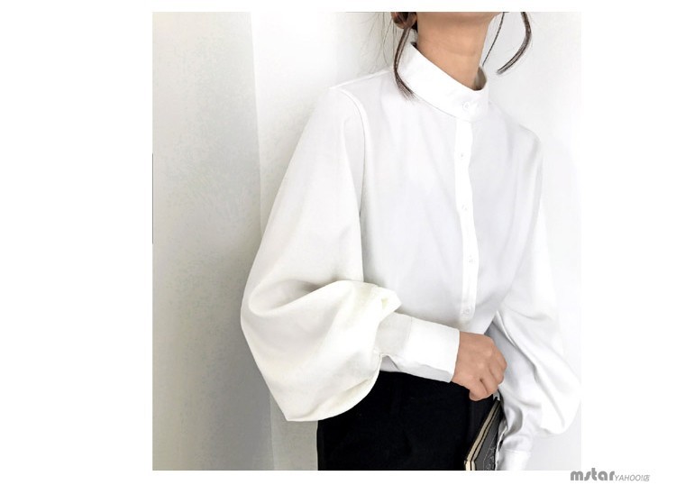 レディースシャツ立襟長袖フェミニンビショップスリーブスリム長袖通勤きれいめオフィストップス シャツ ブラウス