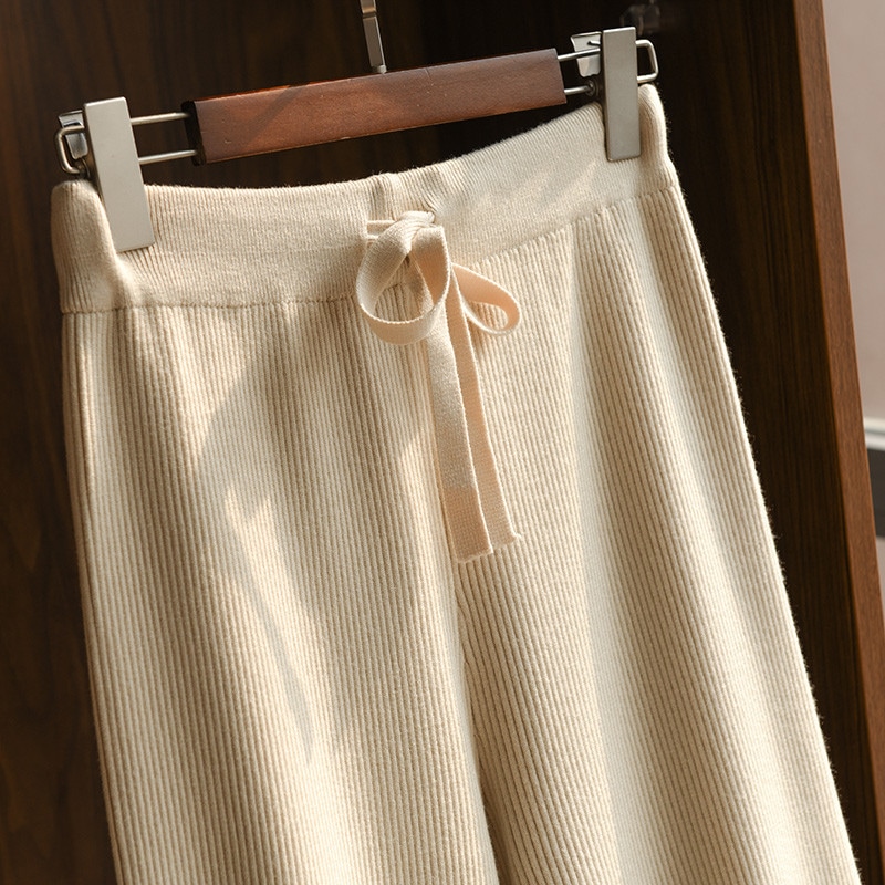 ニットワイドパンツ女性秋冬新作韓国版ハイウエストソリッドカラーレジャー高弾性ストレートパンツ女性 ロングパンツ
