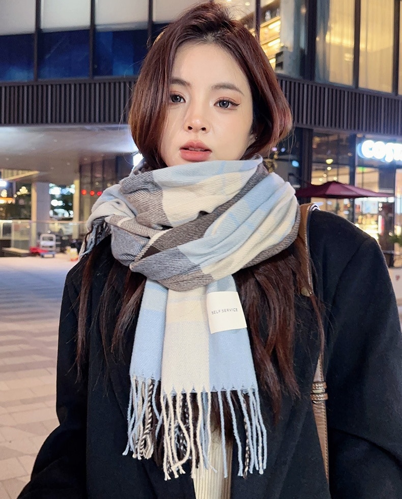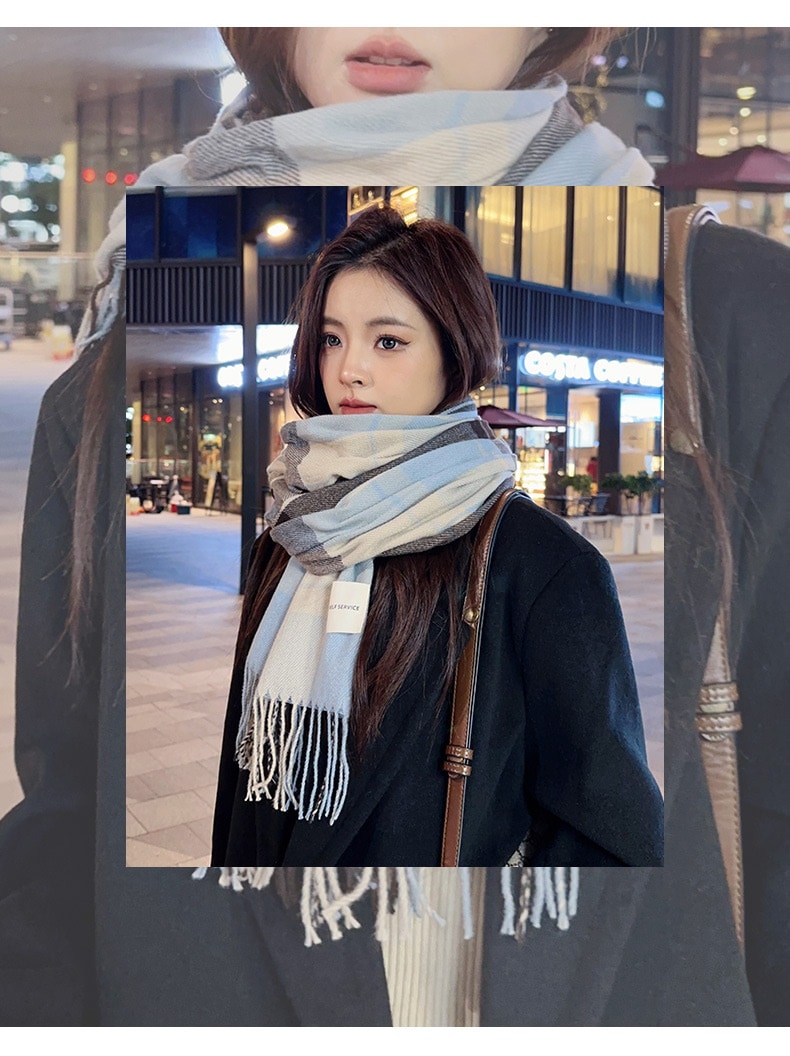 爆発的なモデルの秋と冬暖かいレディース韓国肥厚雰囲気汎用性の高いカップル格子縞の新しいスカーフのハイレベルな感覚 マフラー
