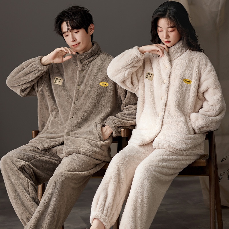 パジャマ レディース メンズ ルームウェア上下セット 可愛い 冬 寝巻き 部屋着 寝間着 フランネル セットアップ 長袖 厚手 韓国風 パジャマ