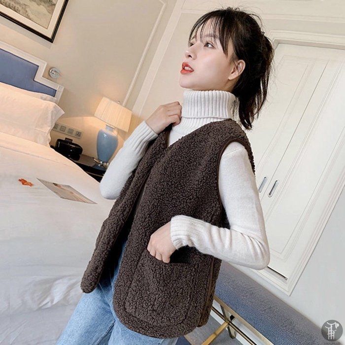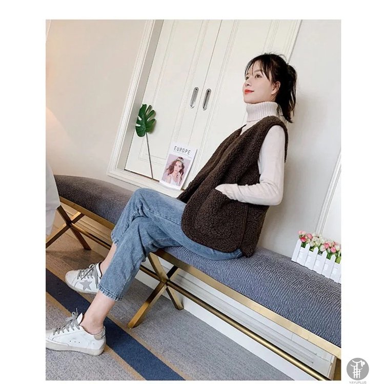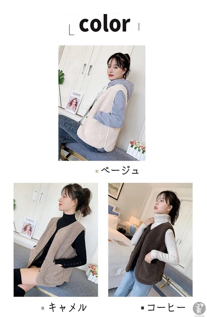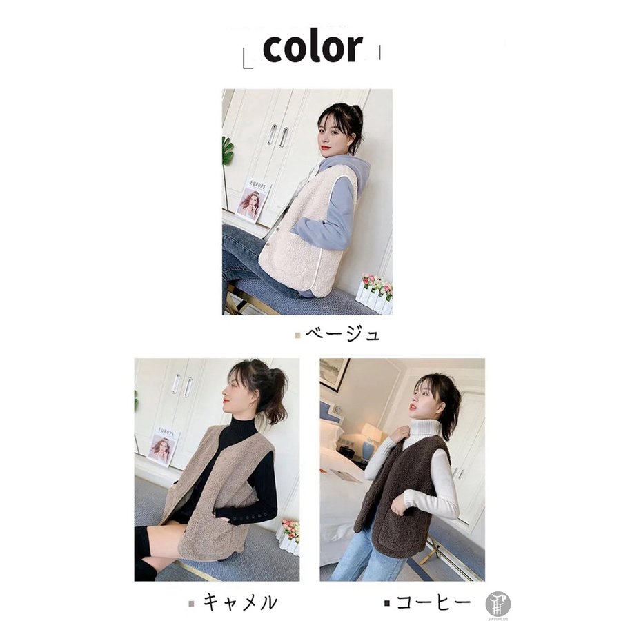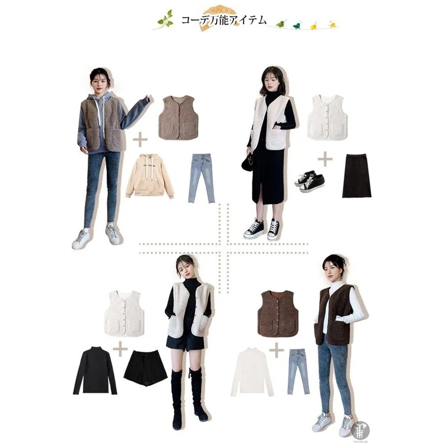 ボアベスト レディース アウター もこもこ トップス ベスト ジレ 前開き 暖かい ムートン調 ノー ベスト