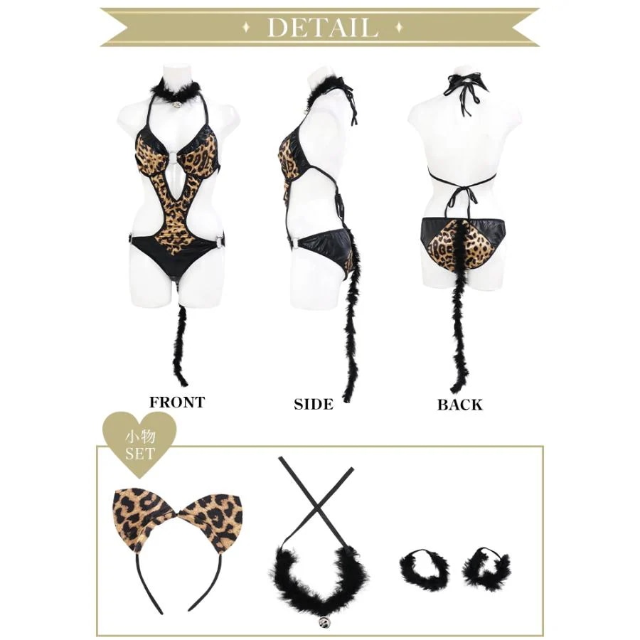 セクシー コスプレ 制服誘惑 アニマル レオパード コスチューム 女豹 衣装 ネコ 猫 しっぽ テディ 猫耳 チョーカー キャット セクシーランジェリー ハロウィン
