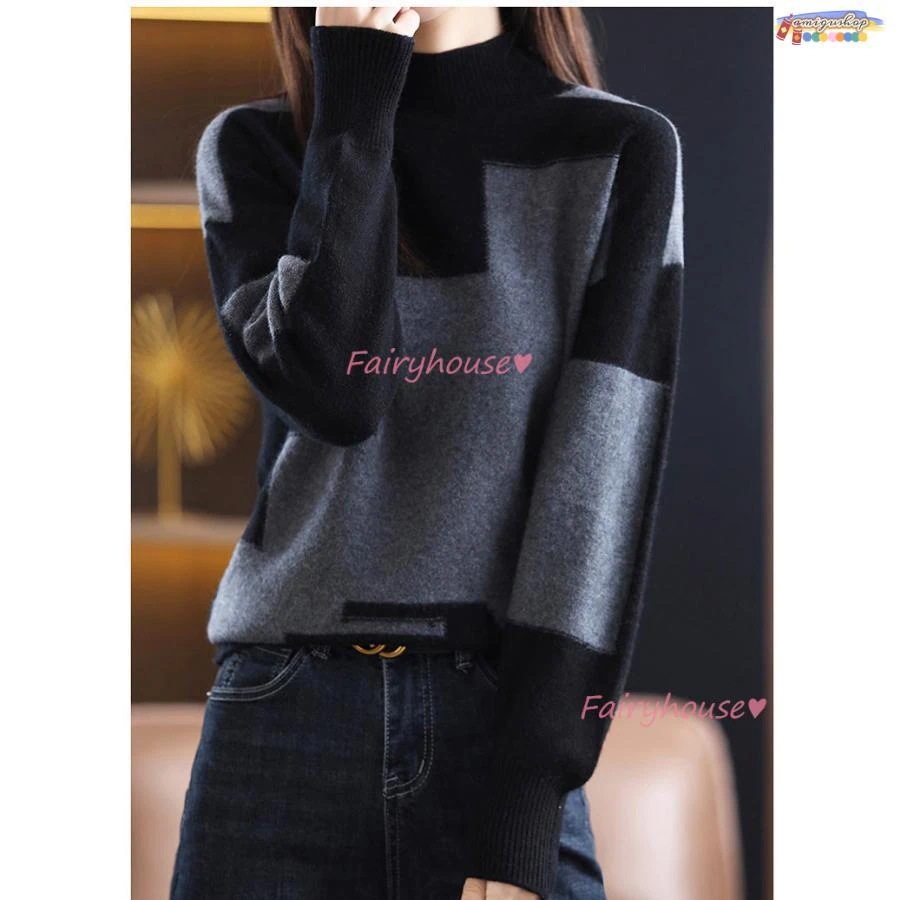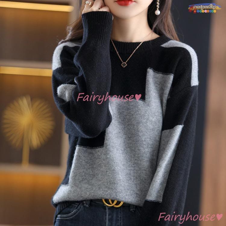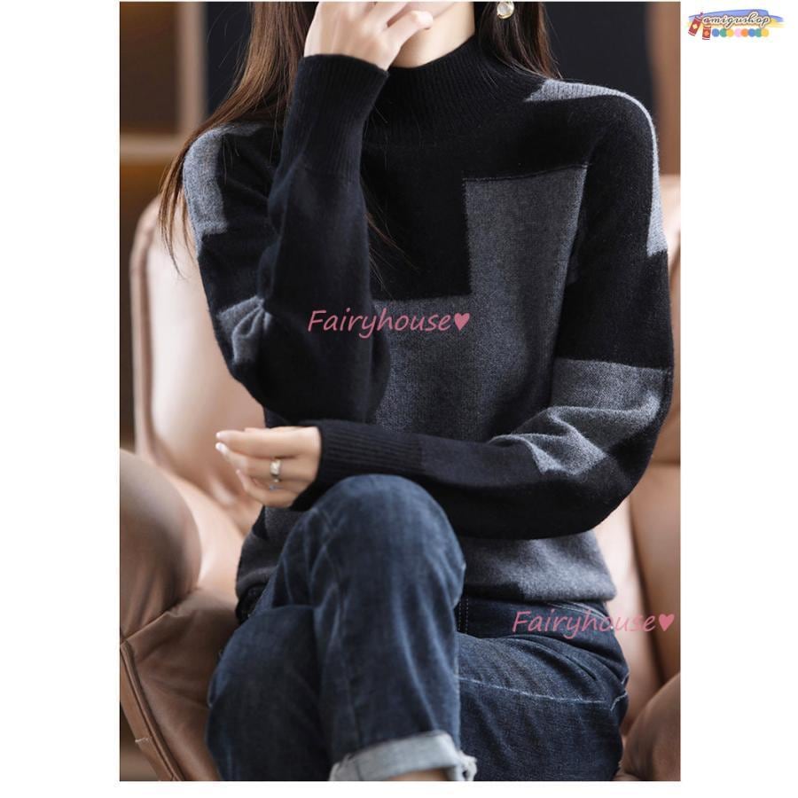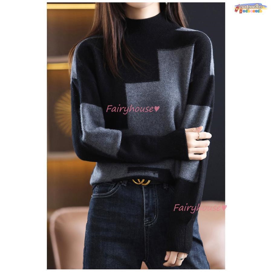 ニットトップス レディース 秋冬 40代 長袖セーター 幾何配色 ショート丈セーター ゆったりプルオーバー オシャレ韓国風 大人ニットインナー 50代 30代