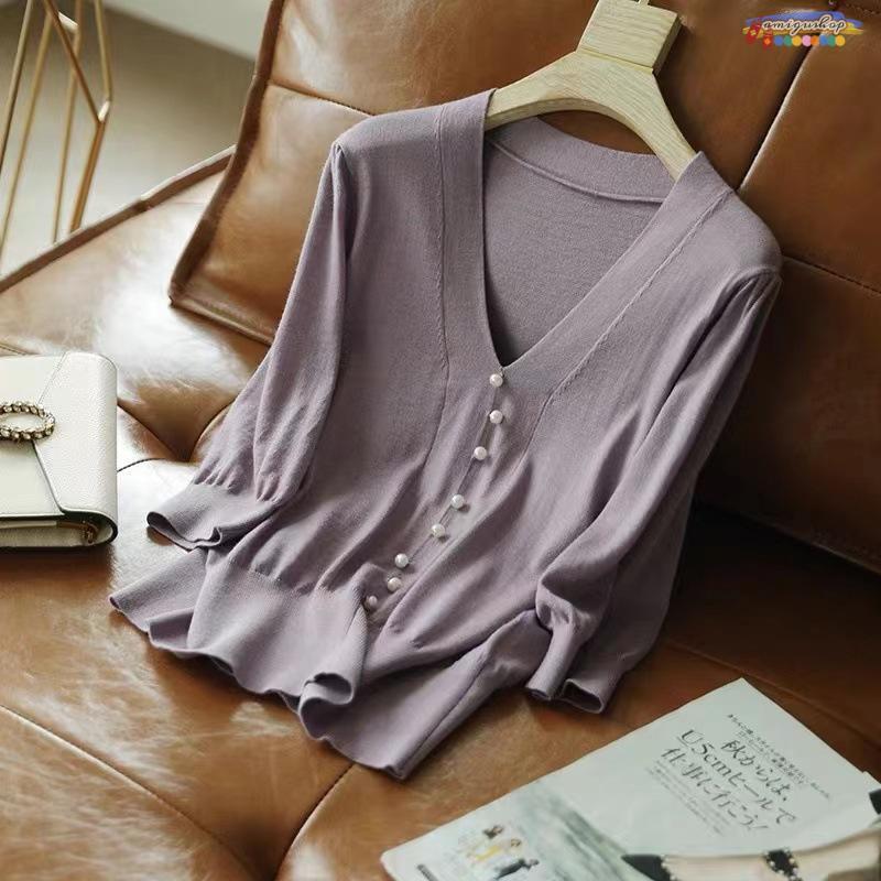 ニットトップス レディース Vネック 長袖 ニットセーター 無地 ボタン飾り ゆったりプルオーバー オシャレ 大人ニットインナー ニット