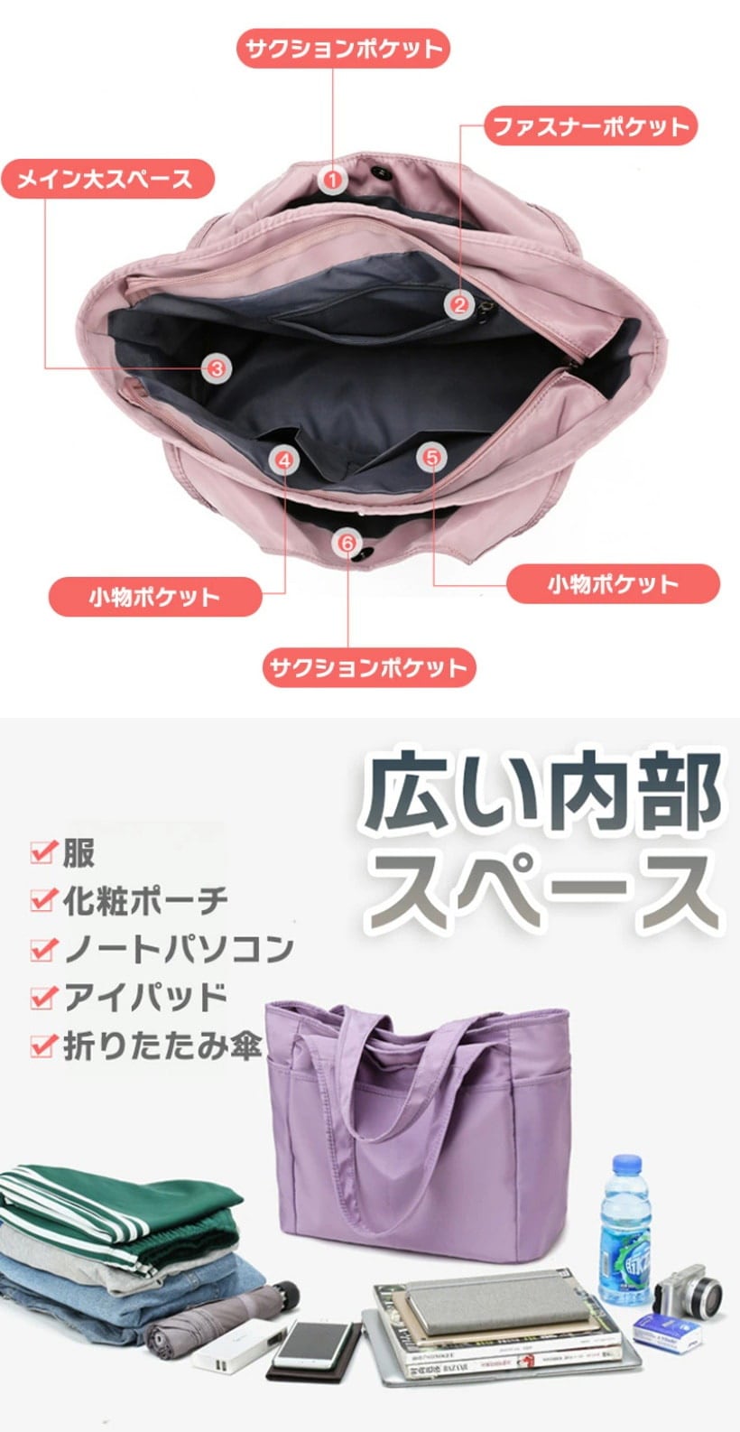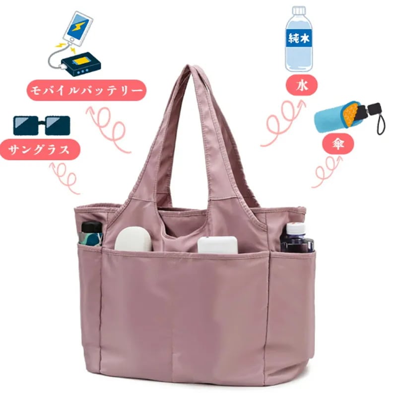 大人気商品 トートバッグ マザーズバッグ かばん レディース ナイロン 撥水 大きめ 大容量 ポケット ファスナー付き 軽い シンプル 入学式 受験 旅行 母の日 通学 通勤 誕生