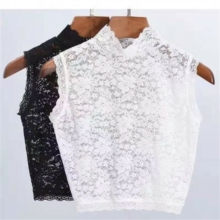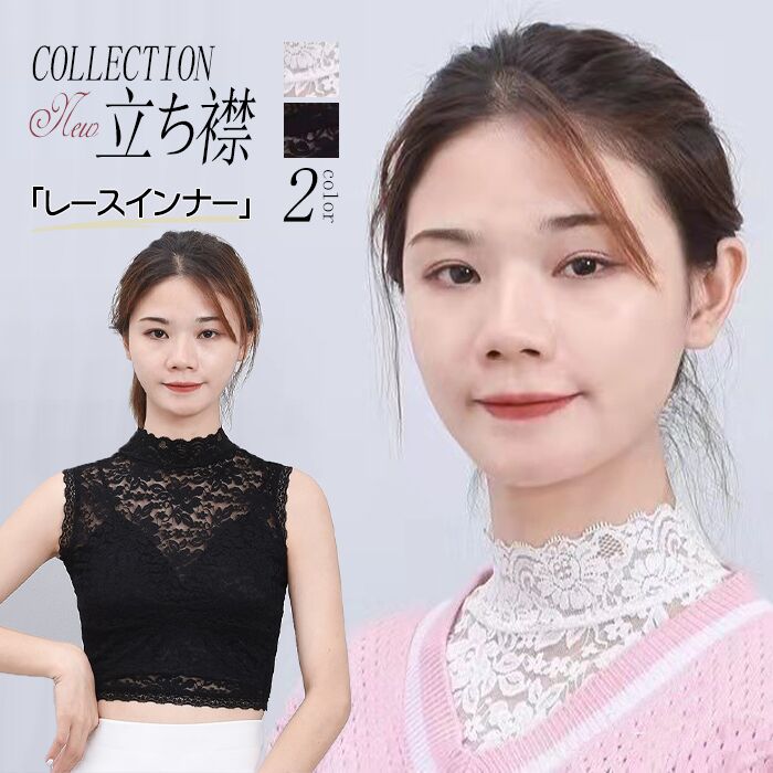 レースインナー レディース 立ち襟 レース インナー 透け感 トップス カットソー ノースリーブ タンクトップ 総レース 肌隠し 透け インナー キャミソール チューブトップレディース レースインナー