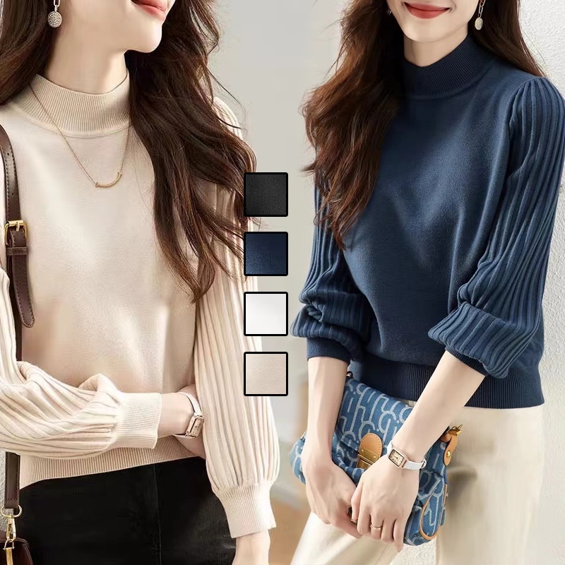 2024新作韓国ファッションニットTシャツ 長袖 7カラー秋ニット レディース 無地 ニット プルオーバー リブニット トップス