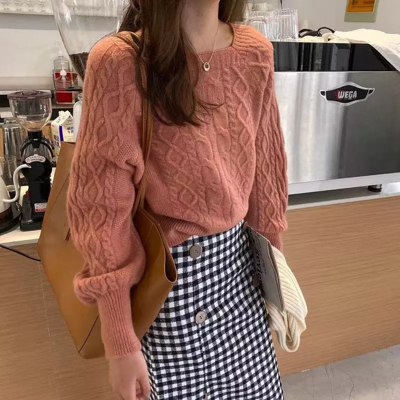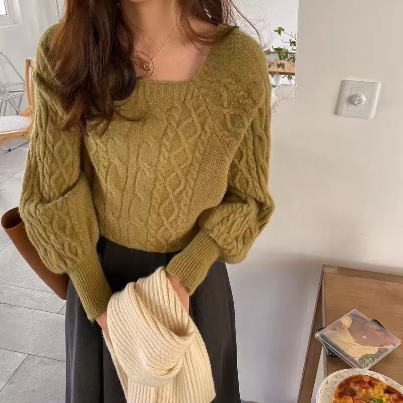 韓国ファッション 秋冬 ゆったりの スクエアネック セーター ショート丈 ニット 長袖カットソー ニット