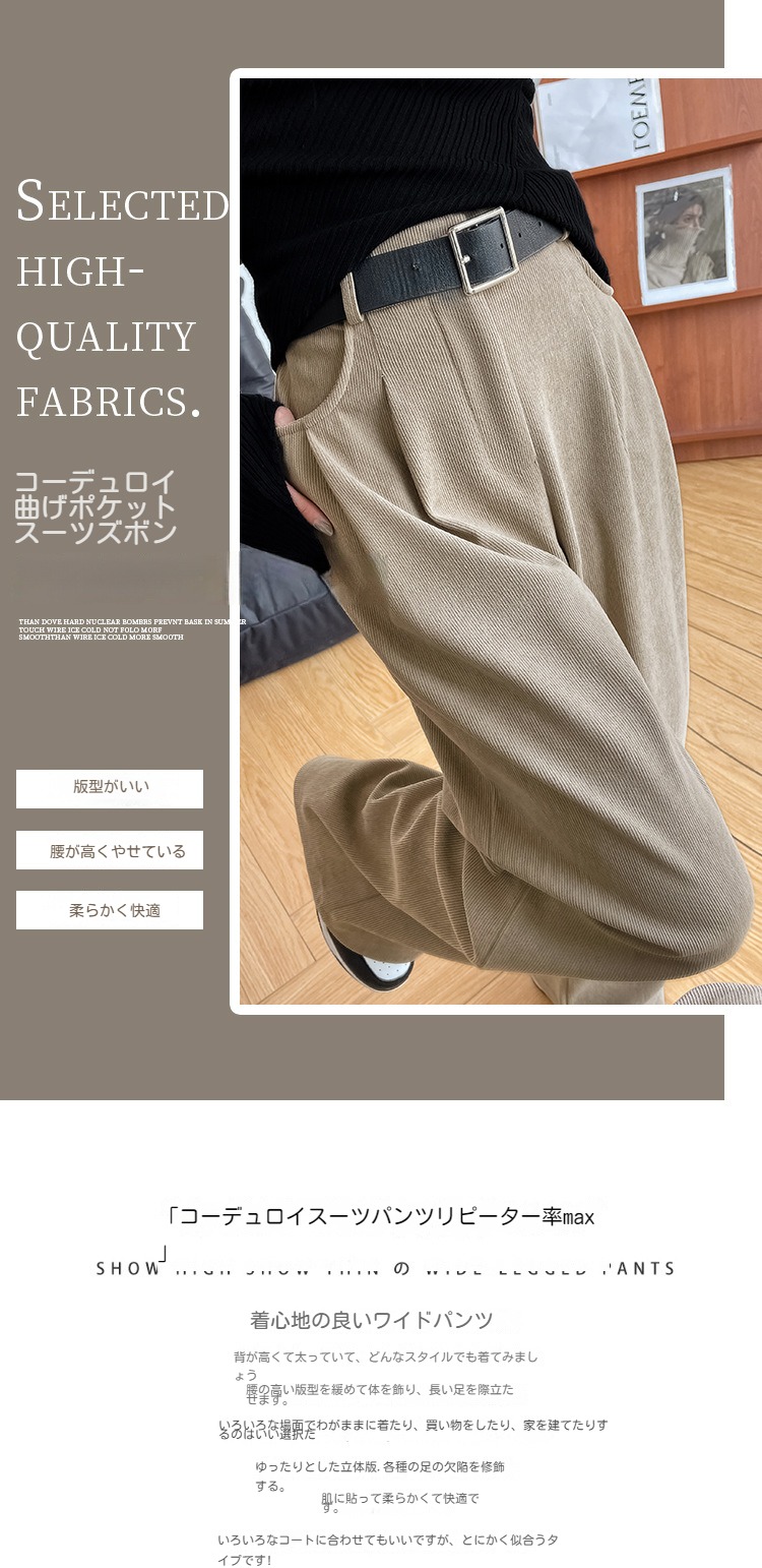 コーデュロイ ロングパンツ レディース 秋冬 着痩せ ゆったり カジュアル ストレート ハイウェスト 黒 白 カーキ コーヒー