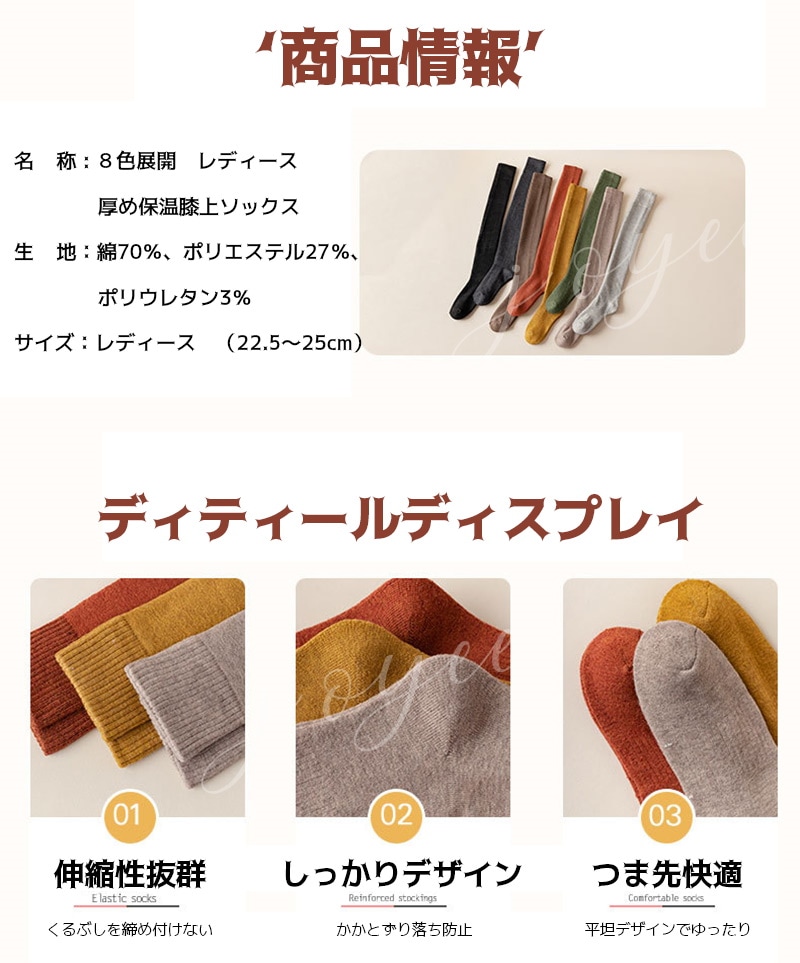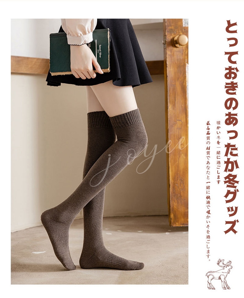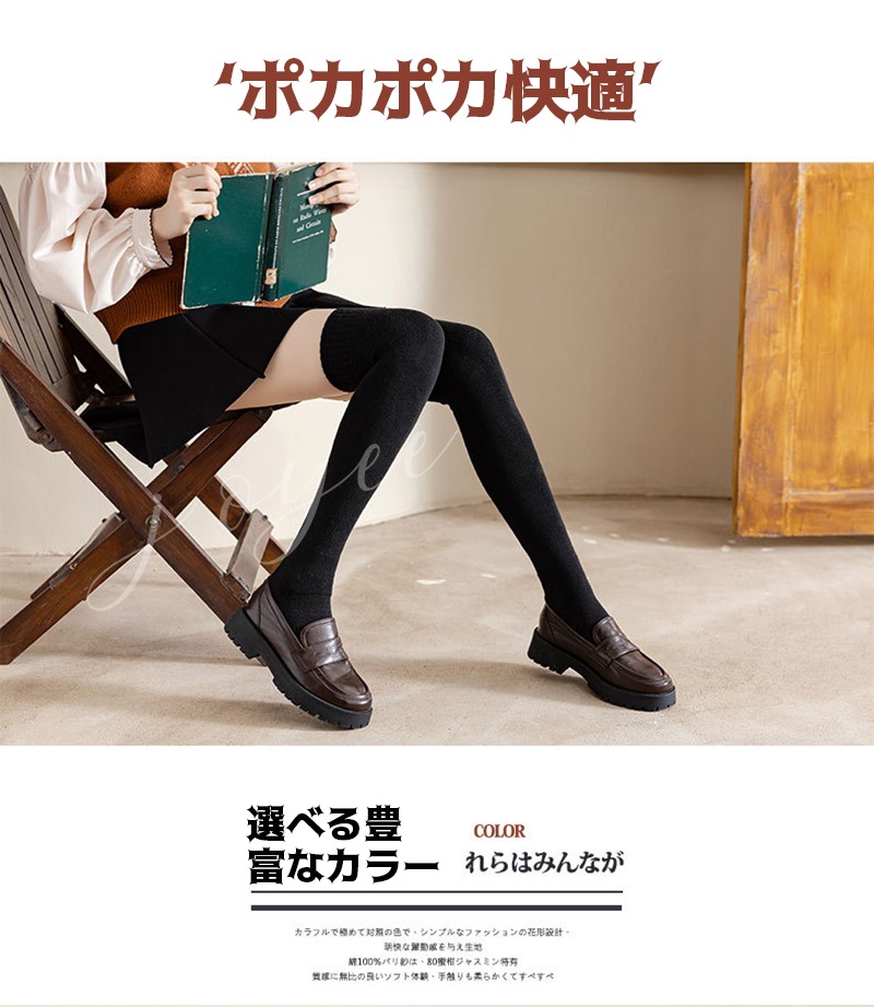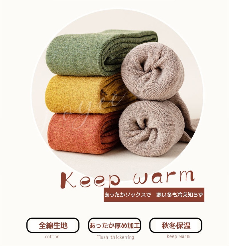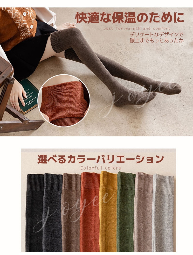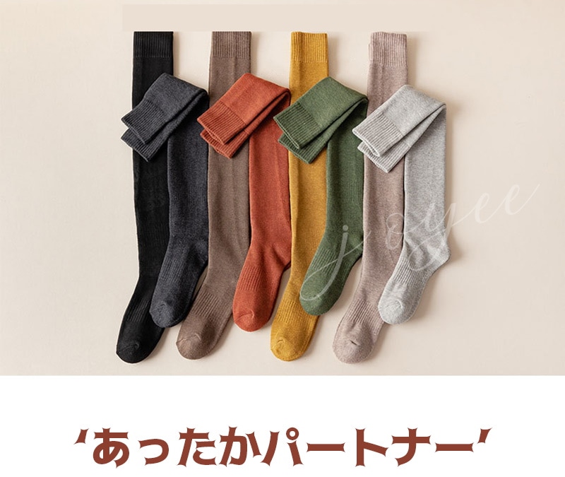 おしゃれコーデ モコモコ保温 秋冬保温 8色展開レディース厚め保温膝上ソックス 靴下