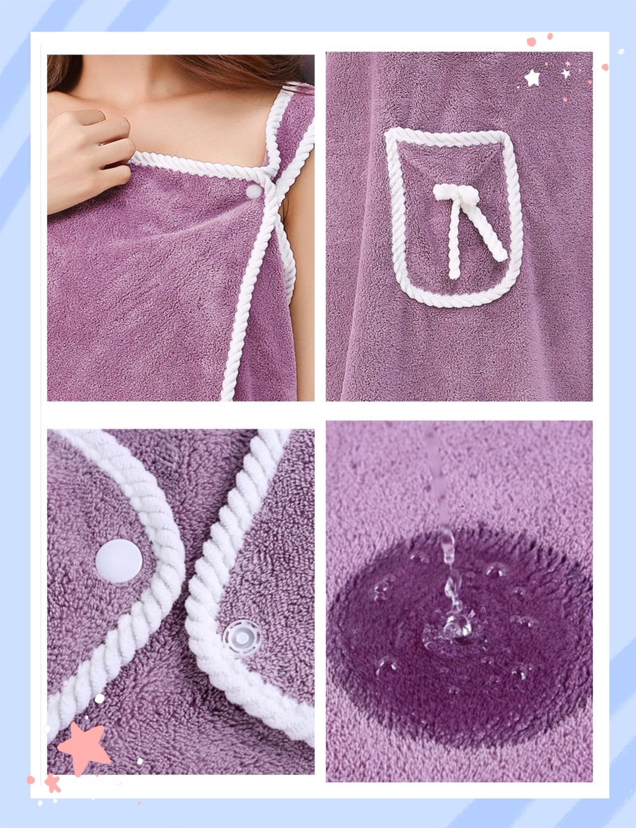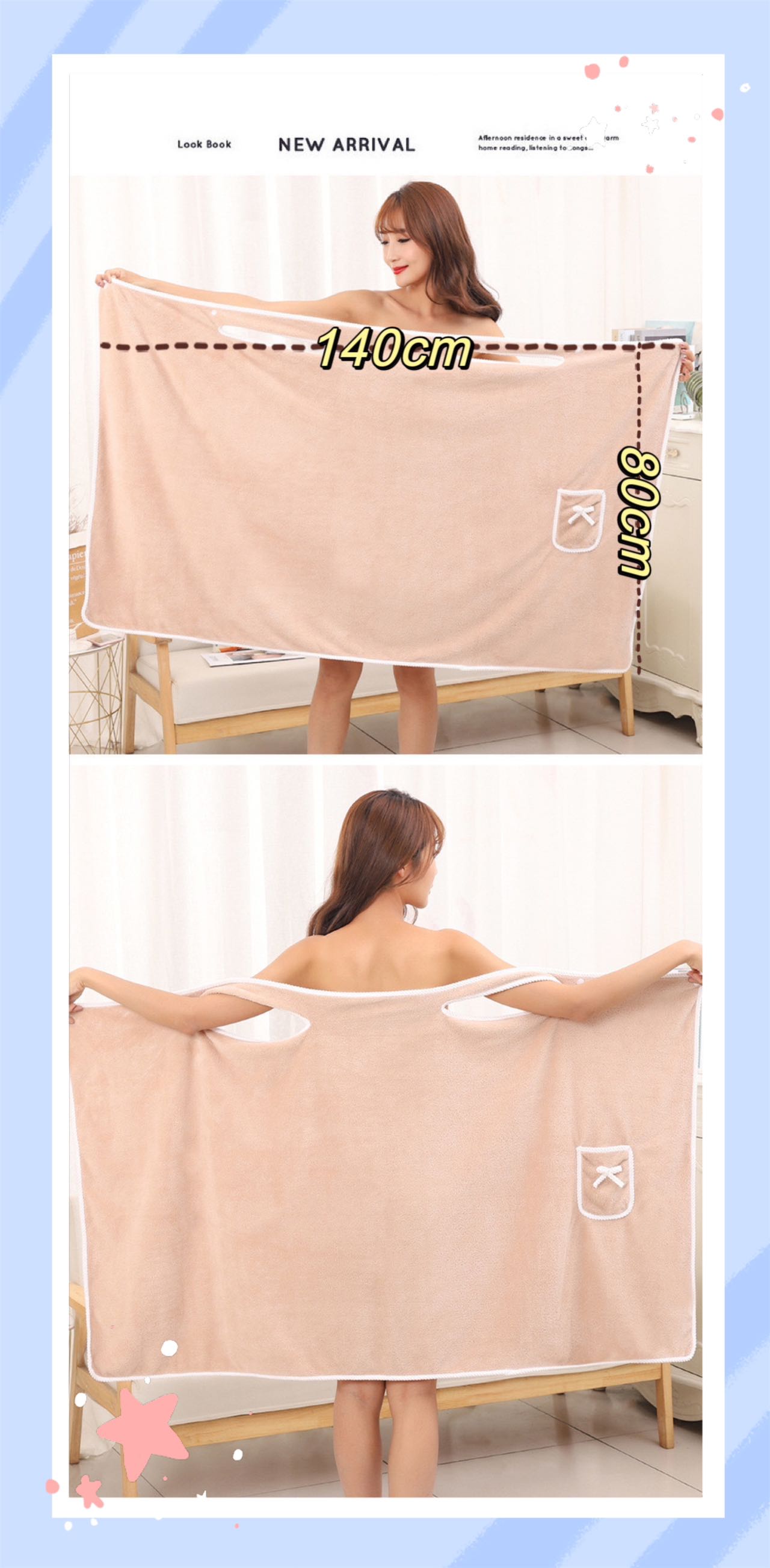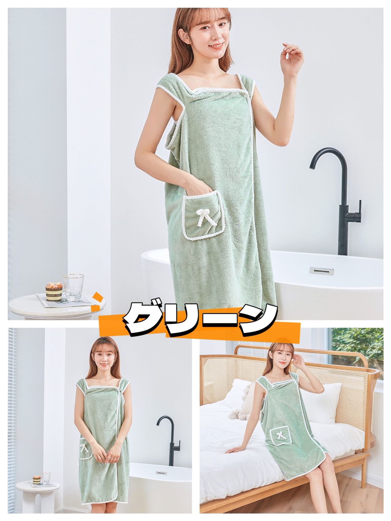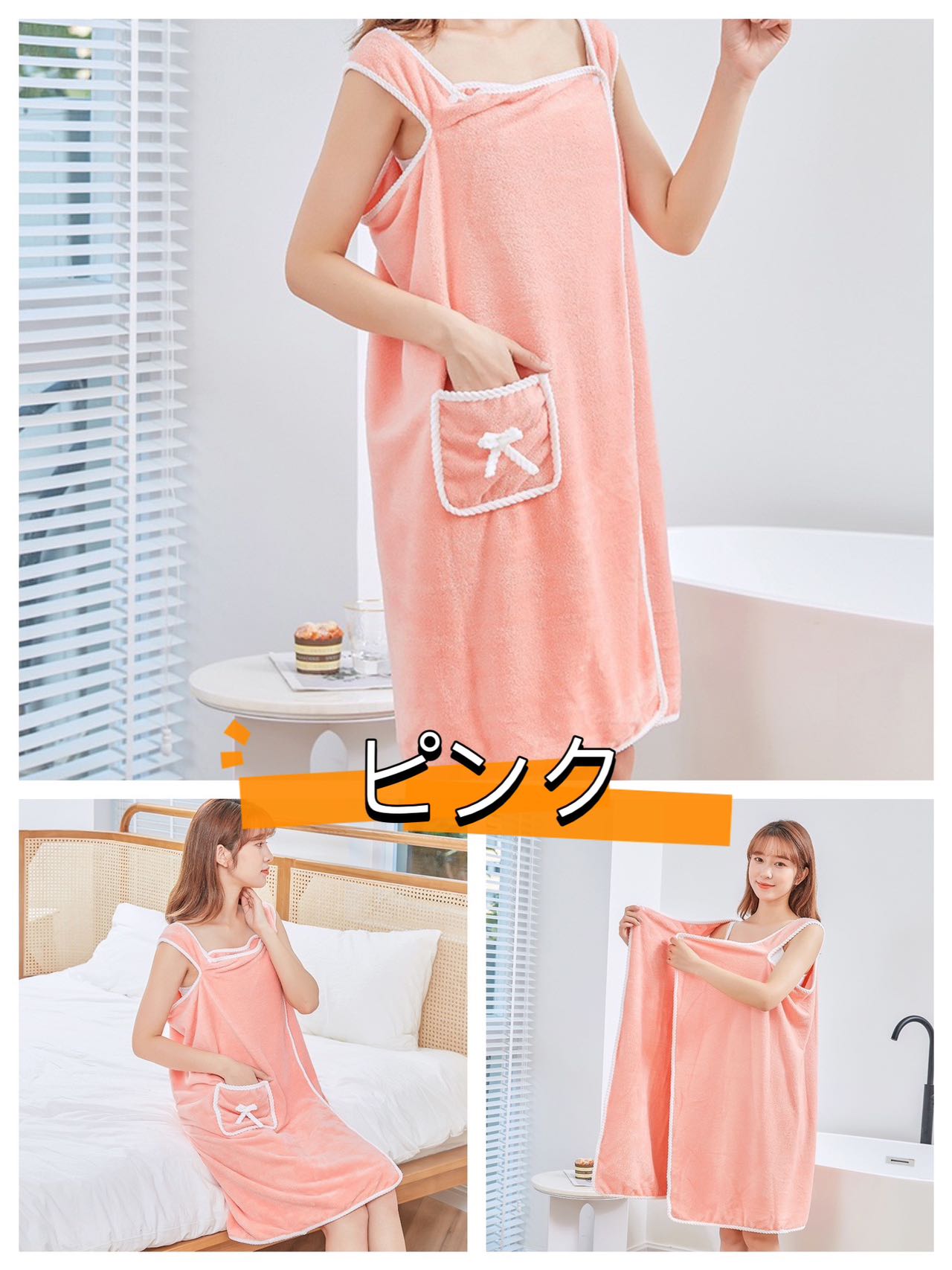 Sontinia 肌触り抜 天使の着るバスタオル バスローブ 大きい サイズ バスタオル タオル ラップタオル レディース 海 プール ジム 旅行 大判 可愛い リボン 無地 ポケット付 マイクロファイバ
