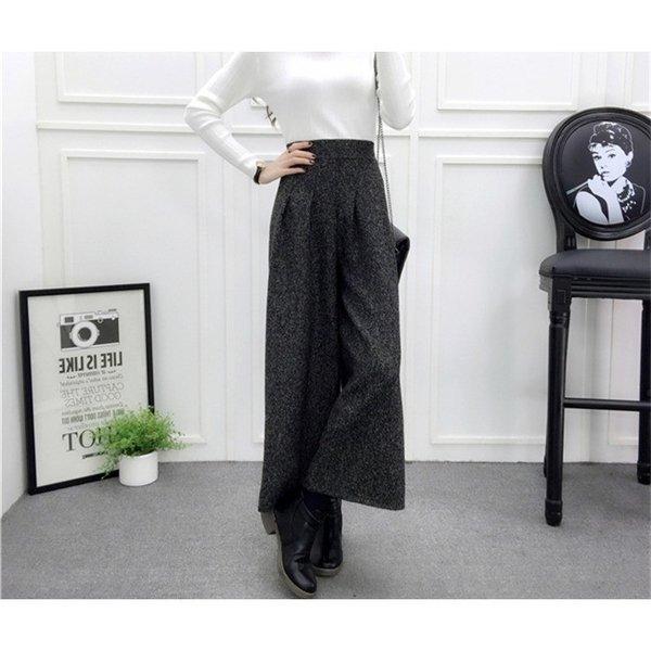 ワイドパンツ ガウチョパンツ 春 冬 レディース 9分丈 ハイウエスト タック入り 大きいサイズ チェック 無地 きれいめ 秋冬 ウエストゴム 厚手 ゆったり