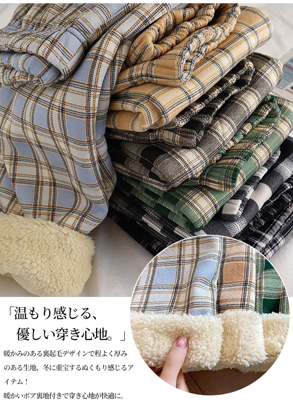 カラー: チェック柄/ブラック(裏起毛) チェック柄/ホワイト(裏起毛) チェック柄/ブラウン(裏起毛) チェック柄/グリーン(裏起毛) チェック柄/ウォーター(裏起毛) チェック柄/イエロー(裏起毛) ジョガーパンツ/ブラック ジョガーパンツ/大チェック ジョガーパンツ/小チェック ジョガーパンツ/ドット ジョガーパンツ/ストライプ