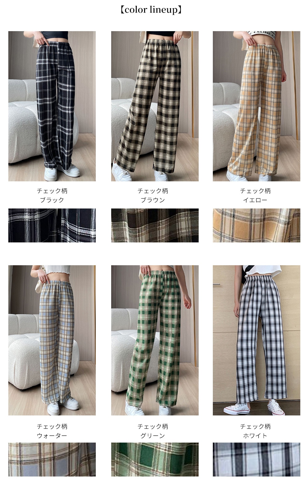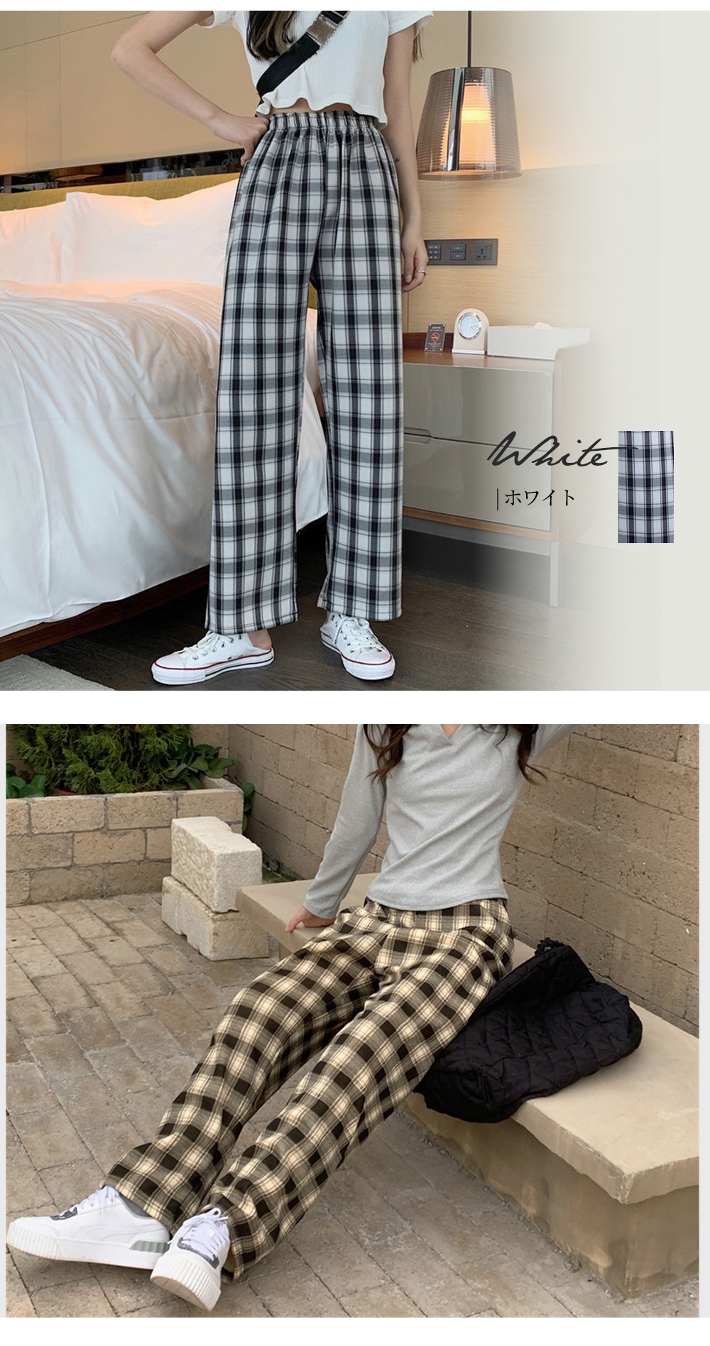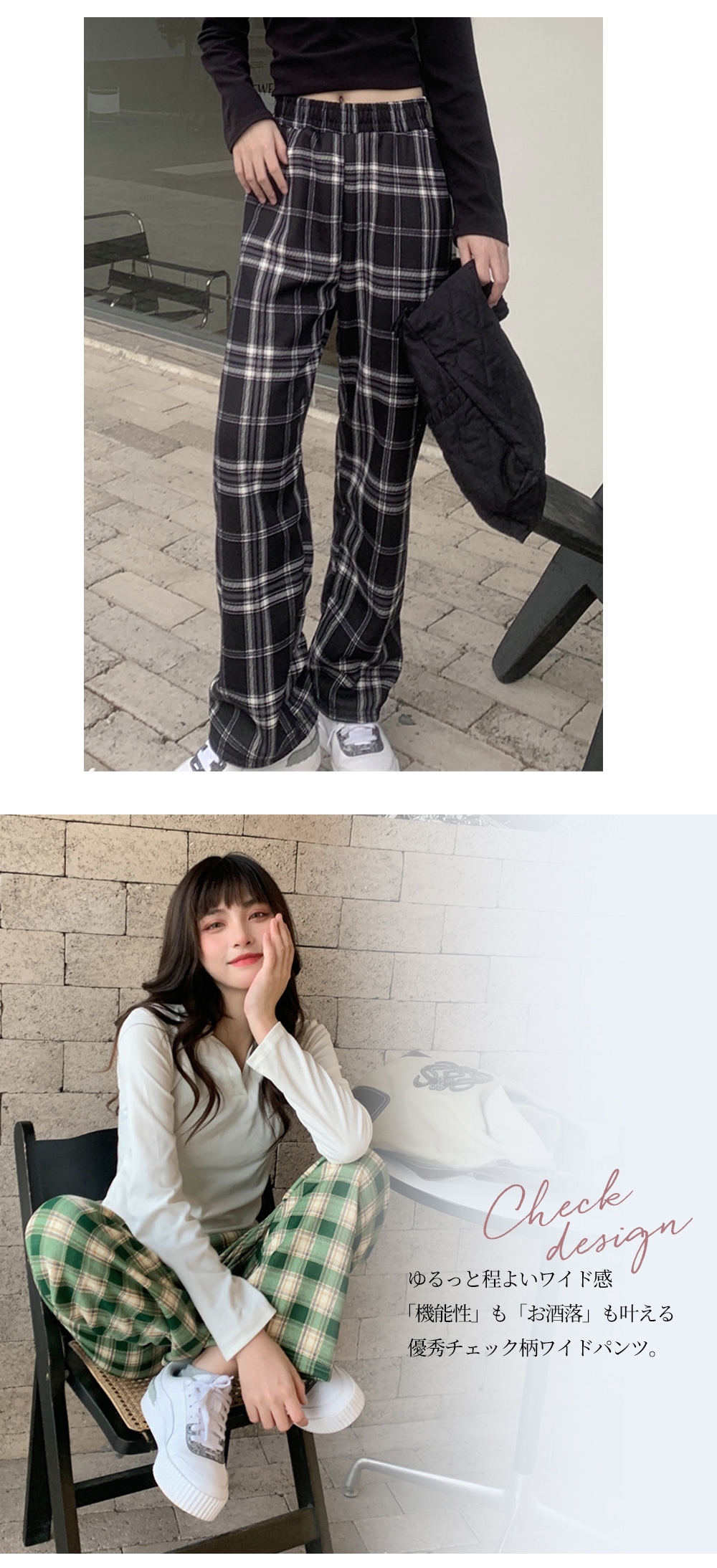 選べる2type 11color チェック ワイドパンツ カジュアル ワイドパンツ 無地 チェック柄 韓国ファッション ロングパンツ