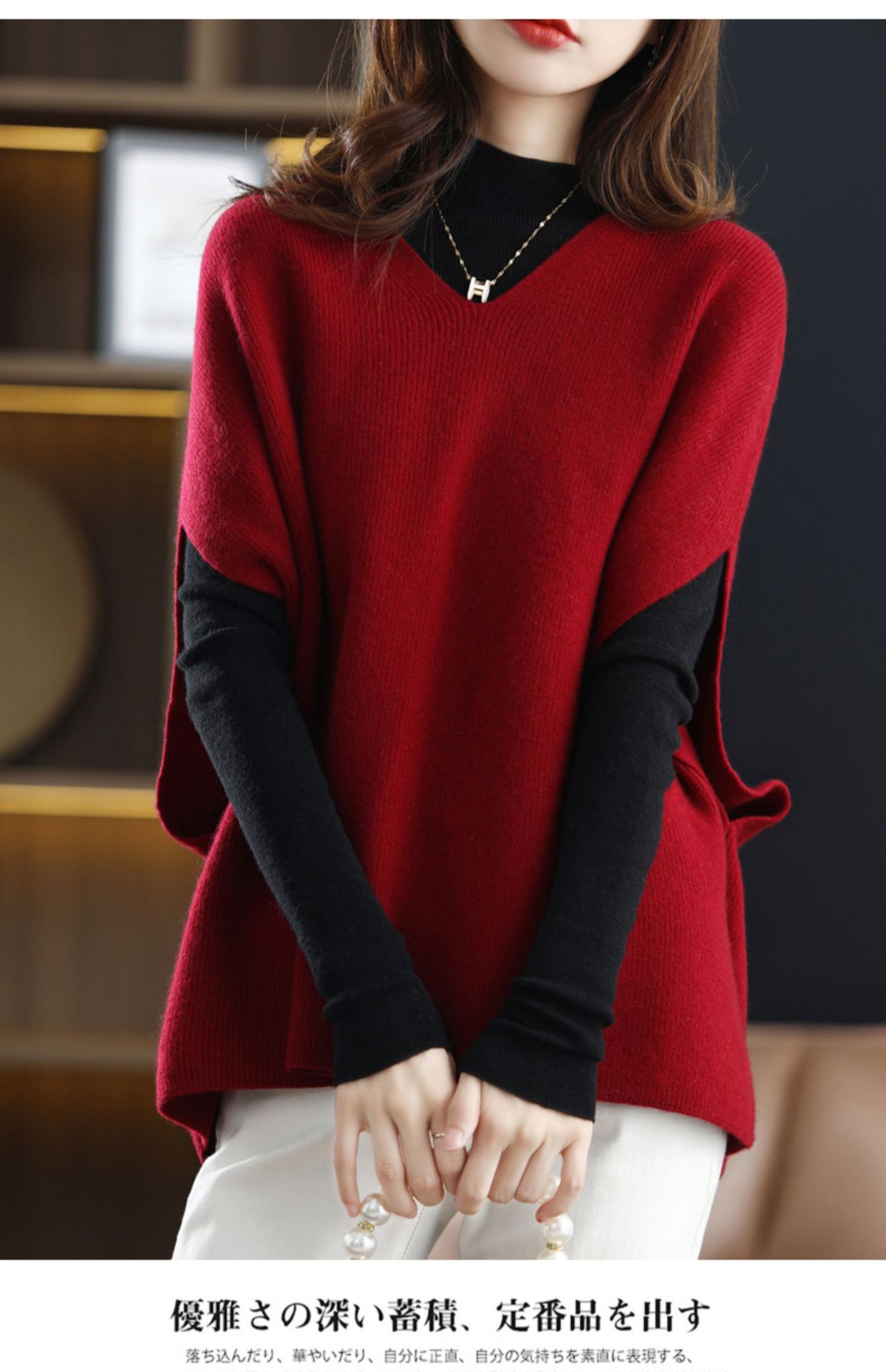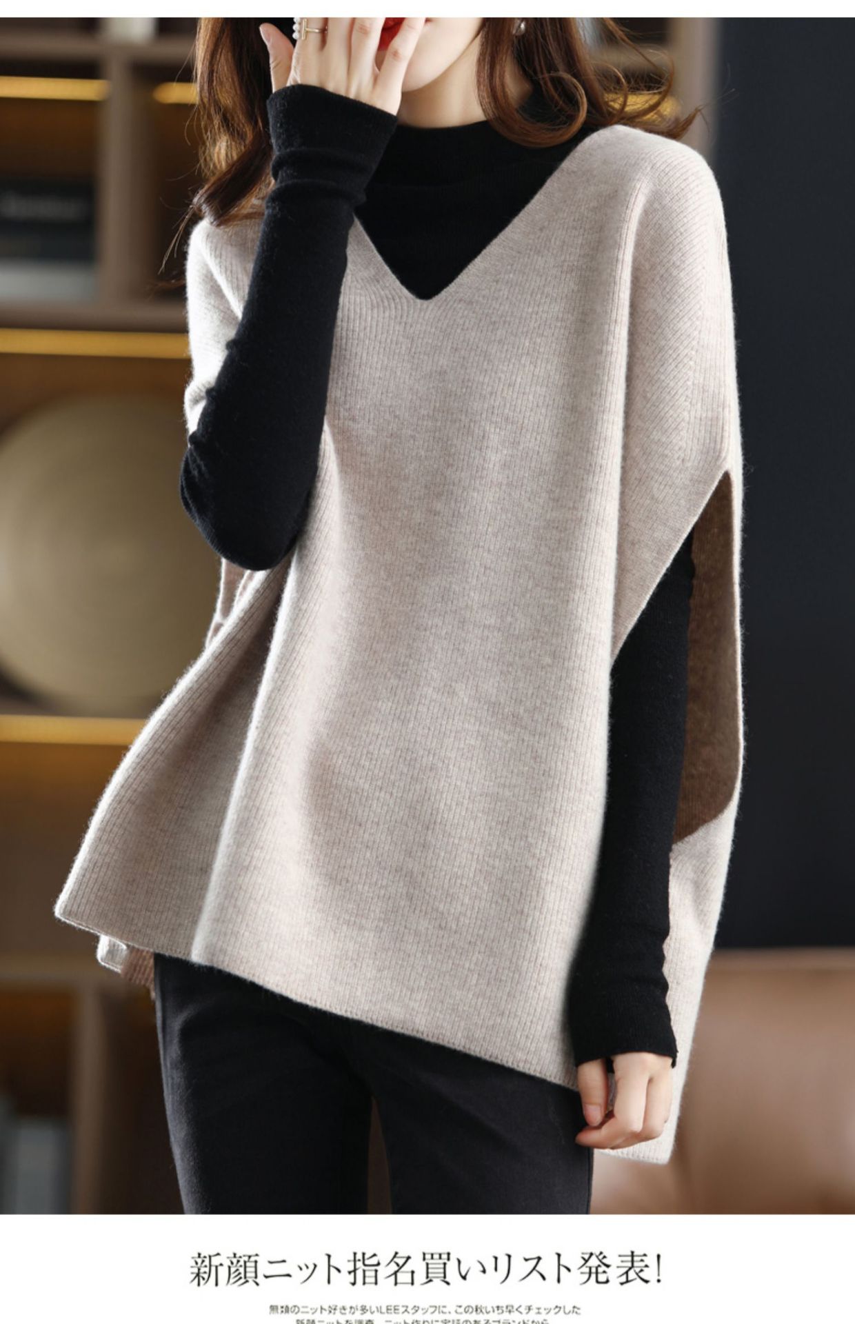 ニットベスト秋 冬 ゆったり シンプルトップス レディース Vネック大きいサイズ 薄手 体型カバー ベスト