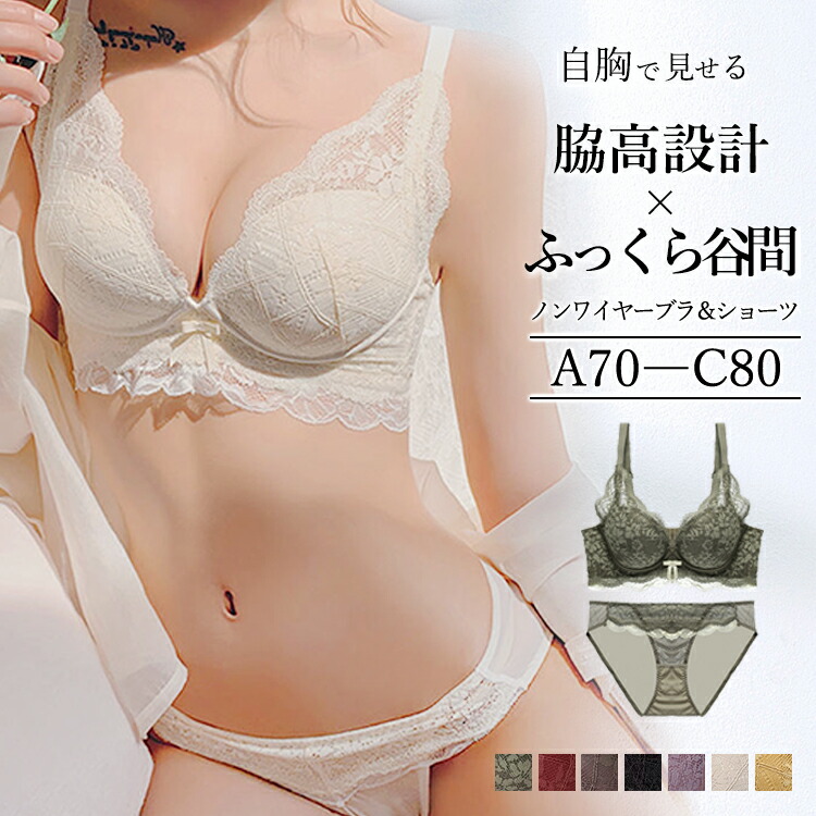 CICIBELLA ノンワイヤー ブラジャー ショーツセット 脇高 補正 谷間 フルレース ブラジャー ブラショーツ 上下セット 育乳ブラ 盛りブラ バストアップ 女性用 下着 脇高でしっかり補正&谷間