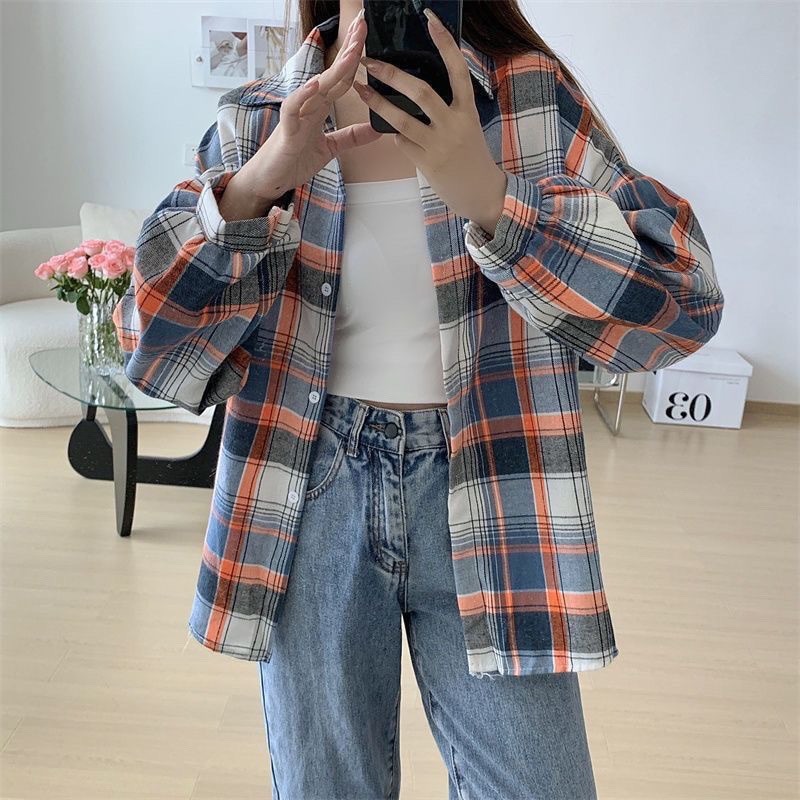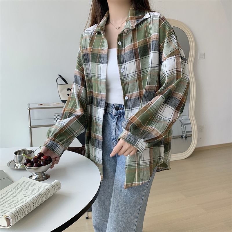 ブラウス 長袖 トップス 大きいサイズ 韓国ファッション ロング カジュア アウター シャツ レディース チェックシャツ 秋