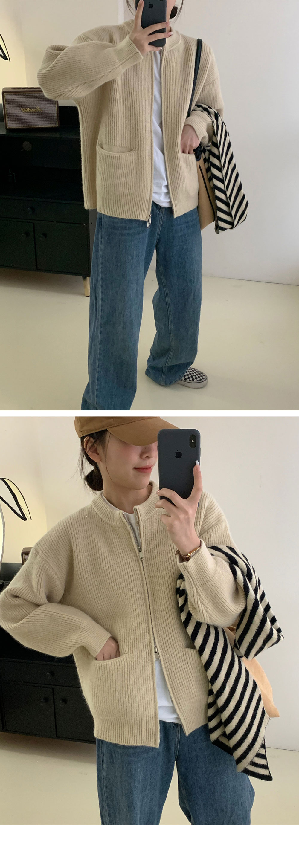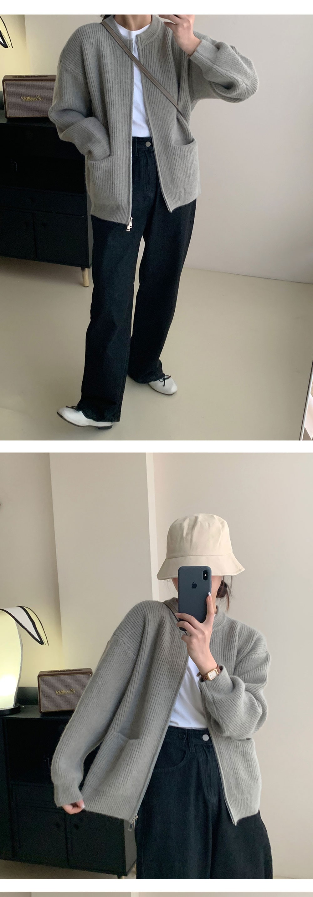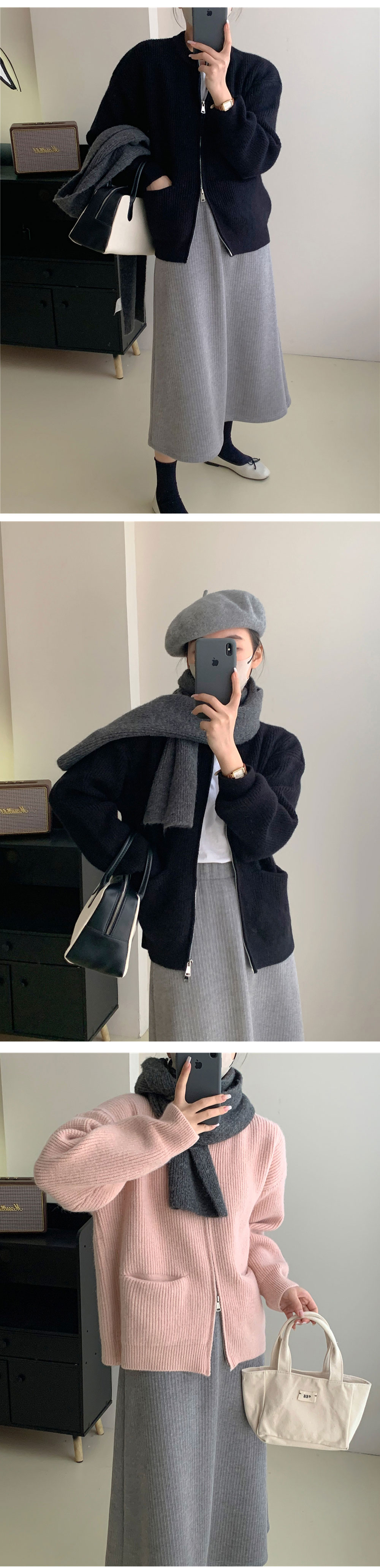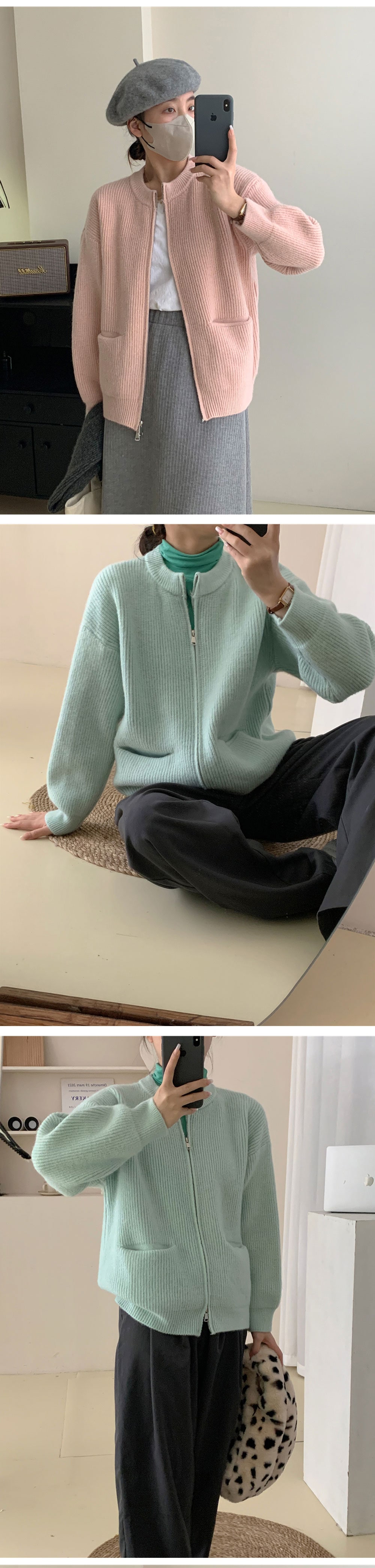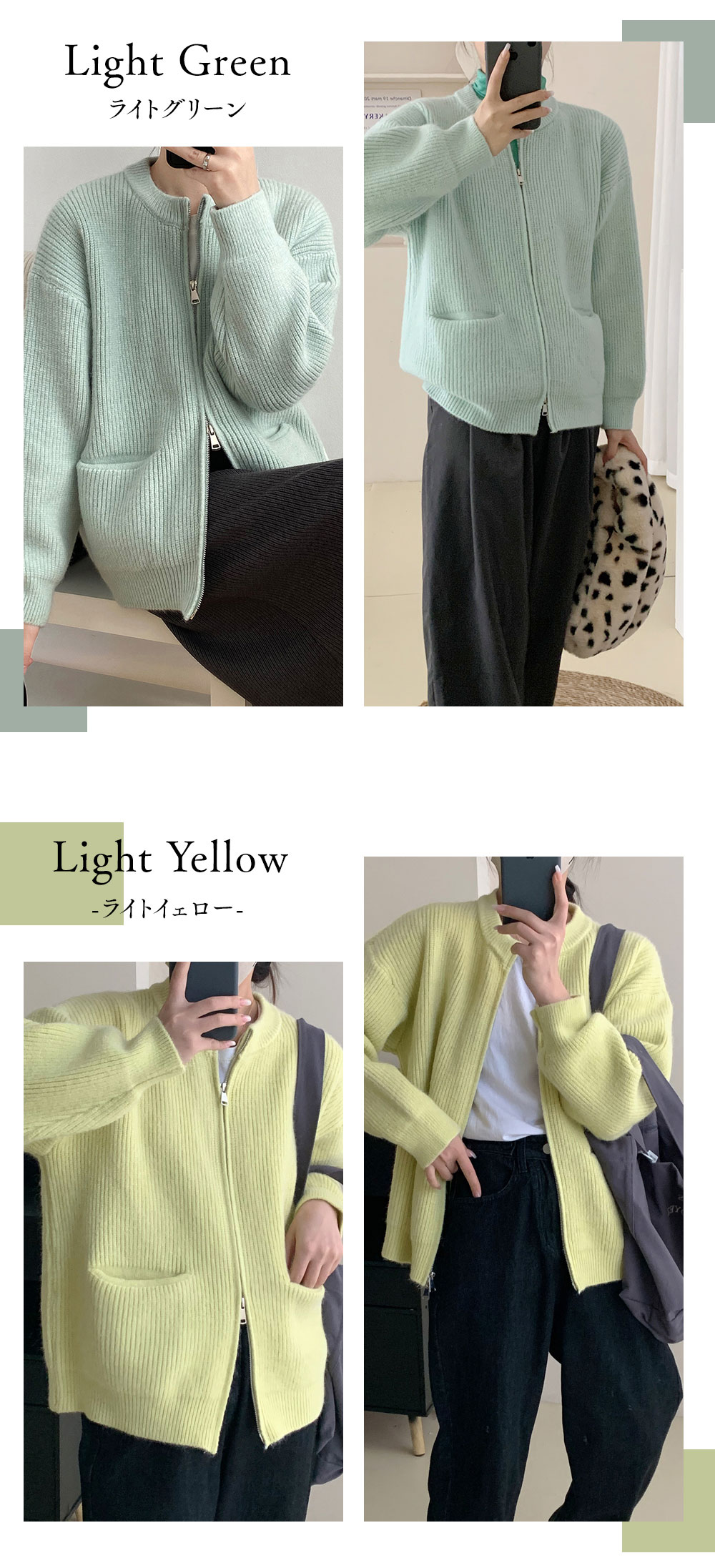 ダブルジップ カーディガントップス アウター カーディガン ニットセーター レディース 重ね着上手秋冬 長袖 ラウンドネック ニット 厚手 ショート ダブルジップ カーディガン